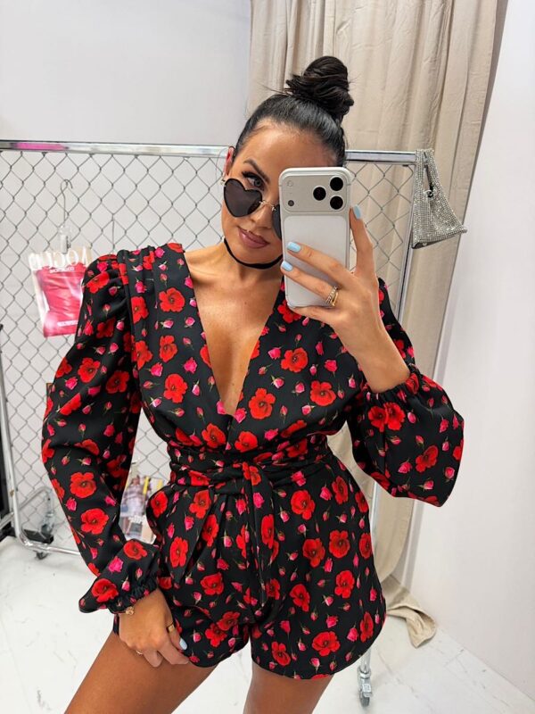 Kombinezon w czerwone kwiaty maki polskiej produkcji LaMilla.