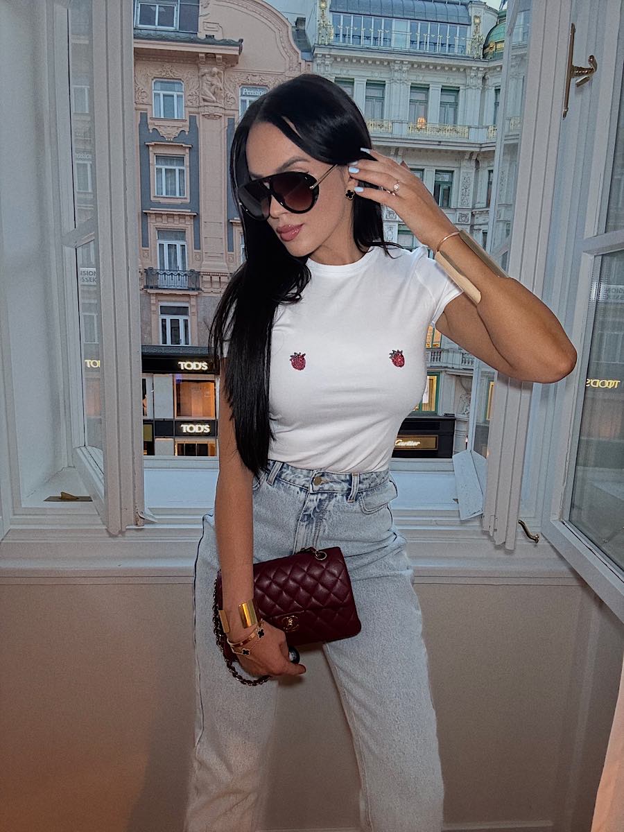 Tagi: bluzka z wiskozy, podkoszulek, t-shirt z aplikacją, truskawka