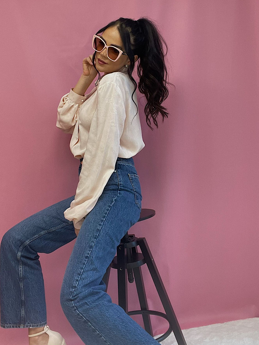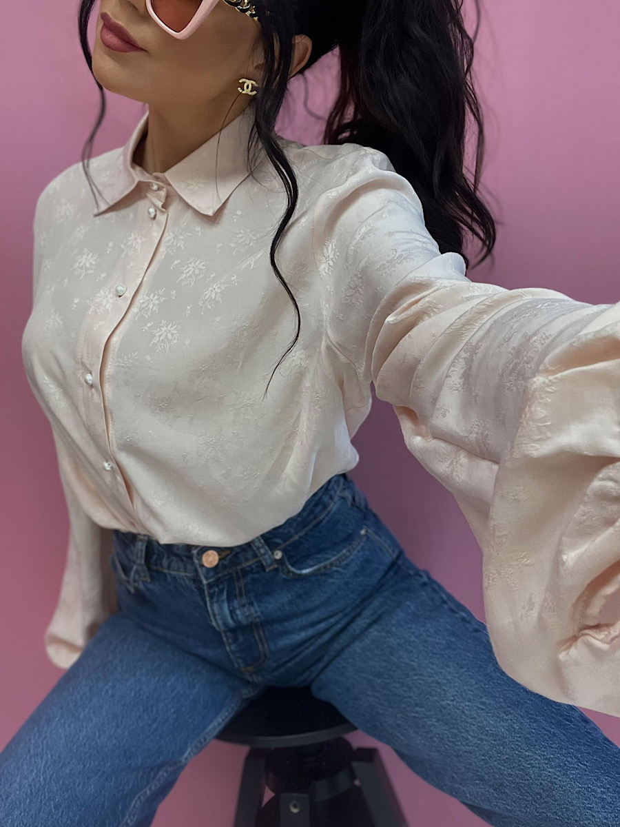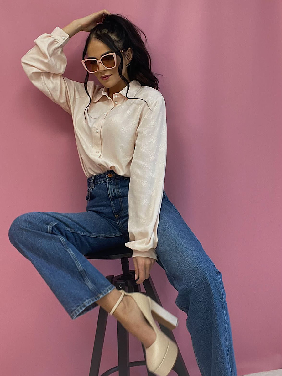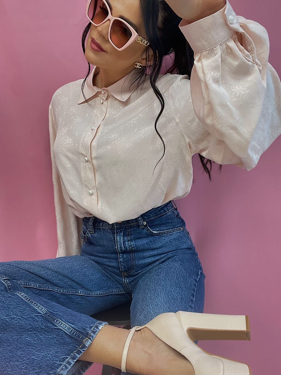 Koszula w kolorze delikatnego kremu przechodzącego w róż z wyszywanymi drobnymi kwiatuszkami.