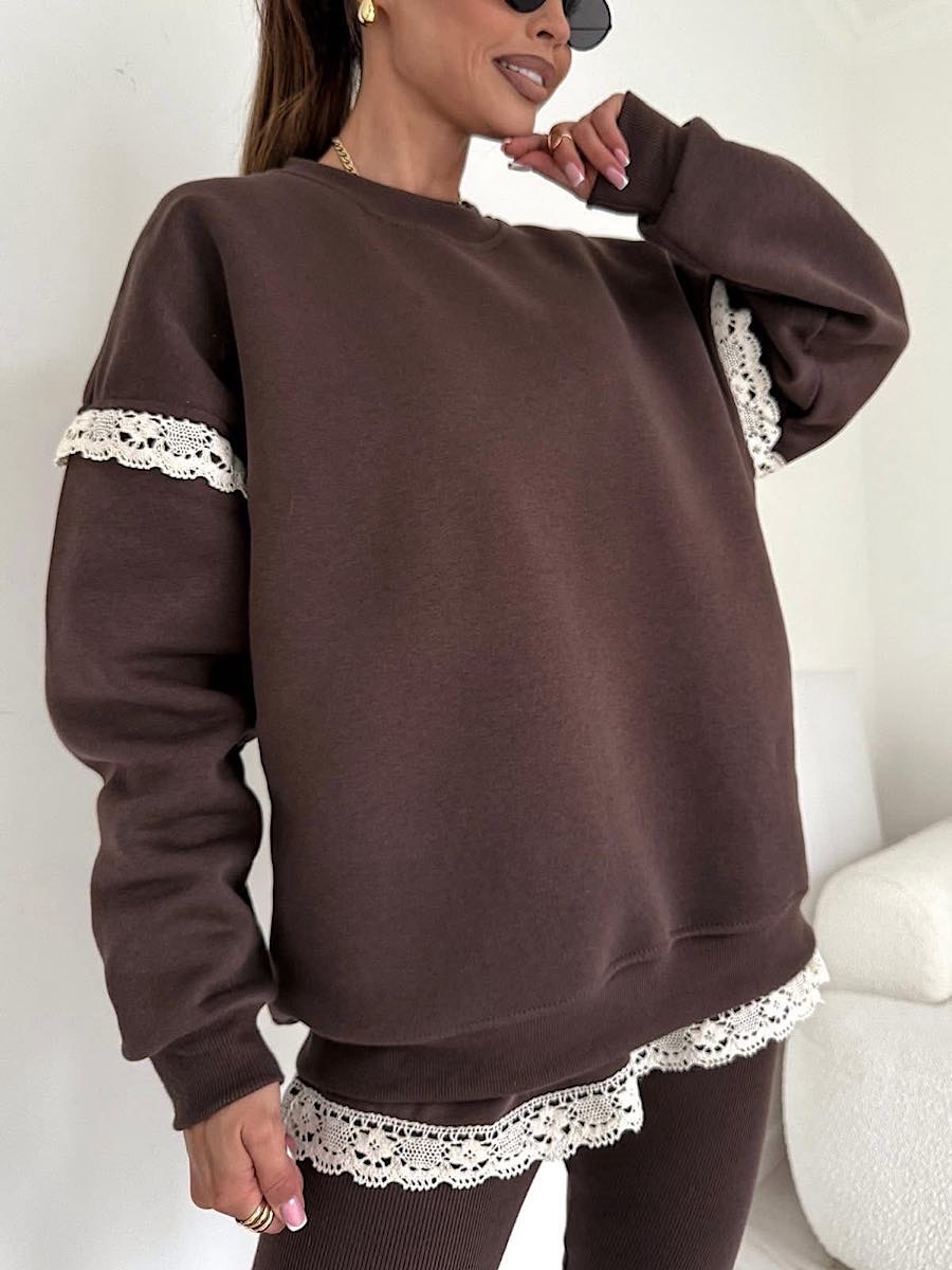 Oversizowa bluza Bocca w brązowym kolorze z ażurową falbanką.