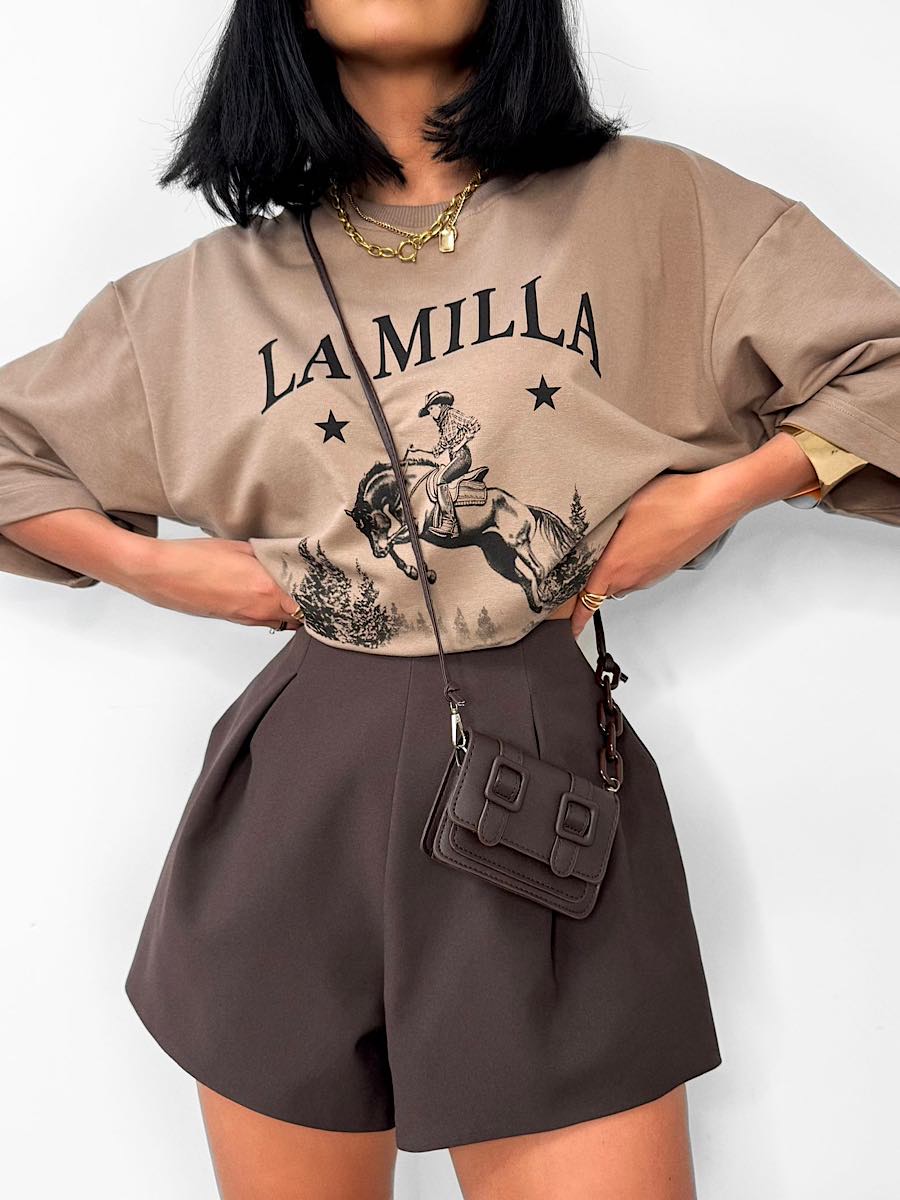 Brązowe eleganckie spodenki bombki z wiskozy LaMilla.