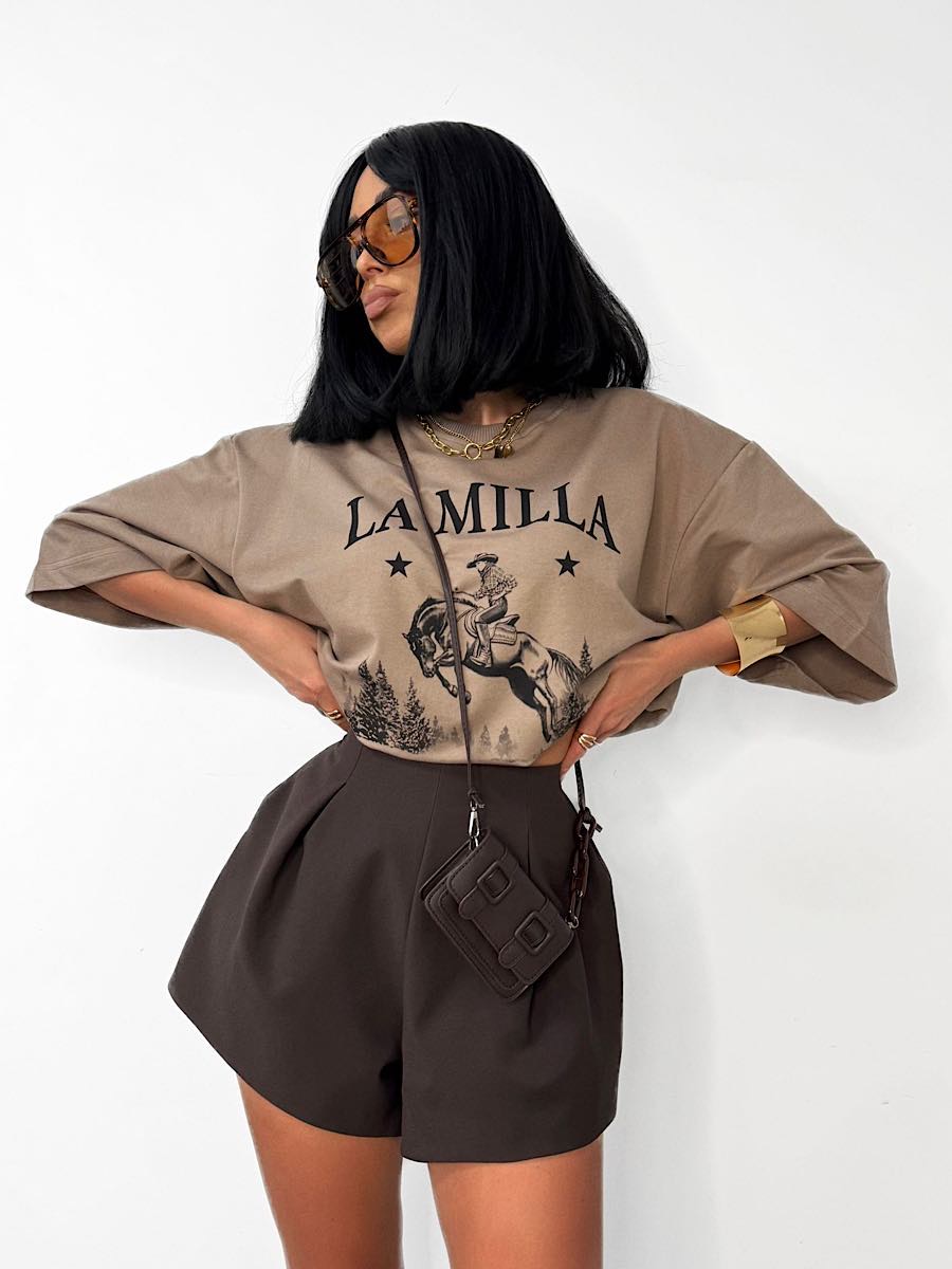 Stylowe i eleganckie brązowe szorty o fasonie bombki to propozycja dla kobiet kochających nowoczesną klasykę i wygodę. Wykonane z wysokiej jakości wiskozy, gwarantują doskonałe dopasowanie do sylwetki oraz przyjemność noszenia przez cały dzień. Model LaMilla zachwyca idealnym krojem, który optycznie wydłuża nogi i podkreśla talię. Zapięcie z tyłu na dyskretny zamek sprawia, że szorty świetnie leżą i prezentują się wyjątkowo kobieco. Zaszewki z przodu nadają im bardzo oryginalnego charakteru. Stworzysz z nimi wiele pięknych stylizacji zarówno tych eleganckich, jak i codziennych outfitów.