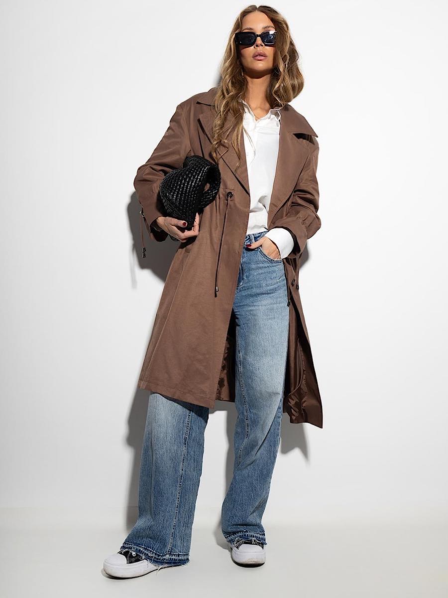 Casualowy płaszcz – trencz Edan w brązowym kolorze