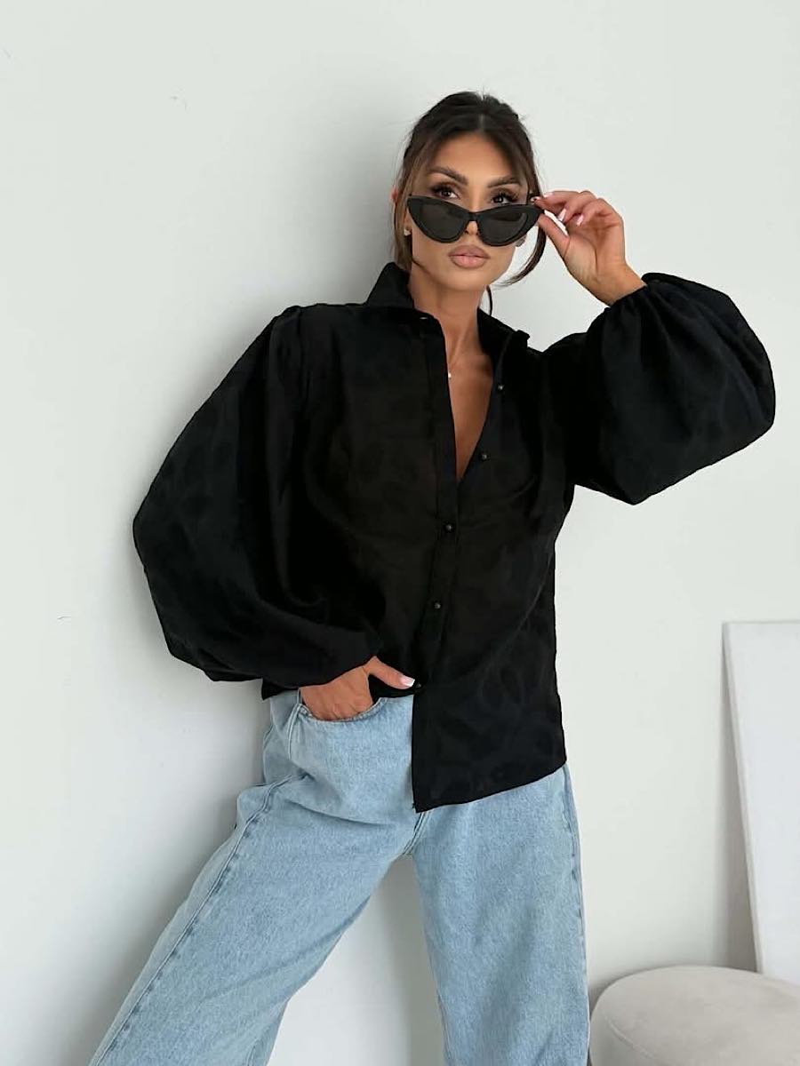 Czarna koszula Megi B z wzorem liści