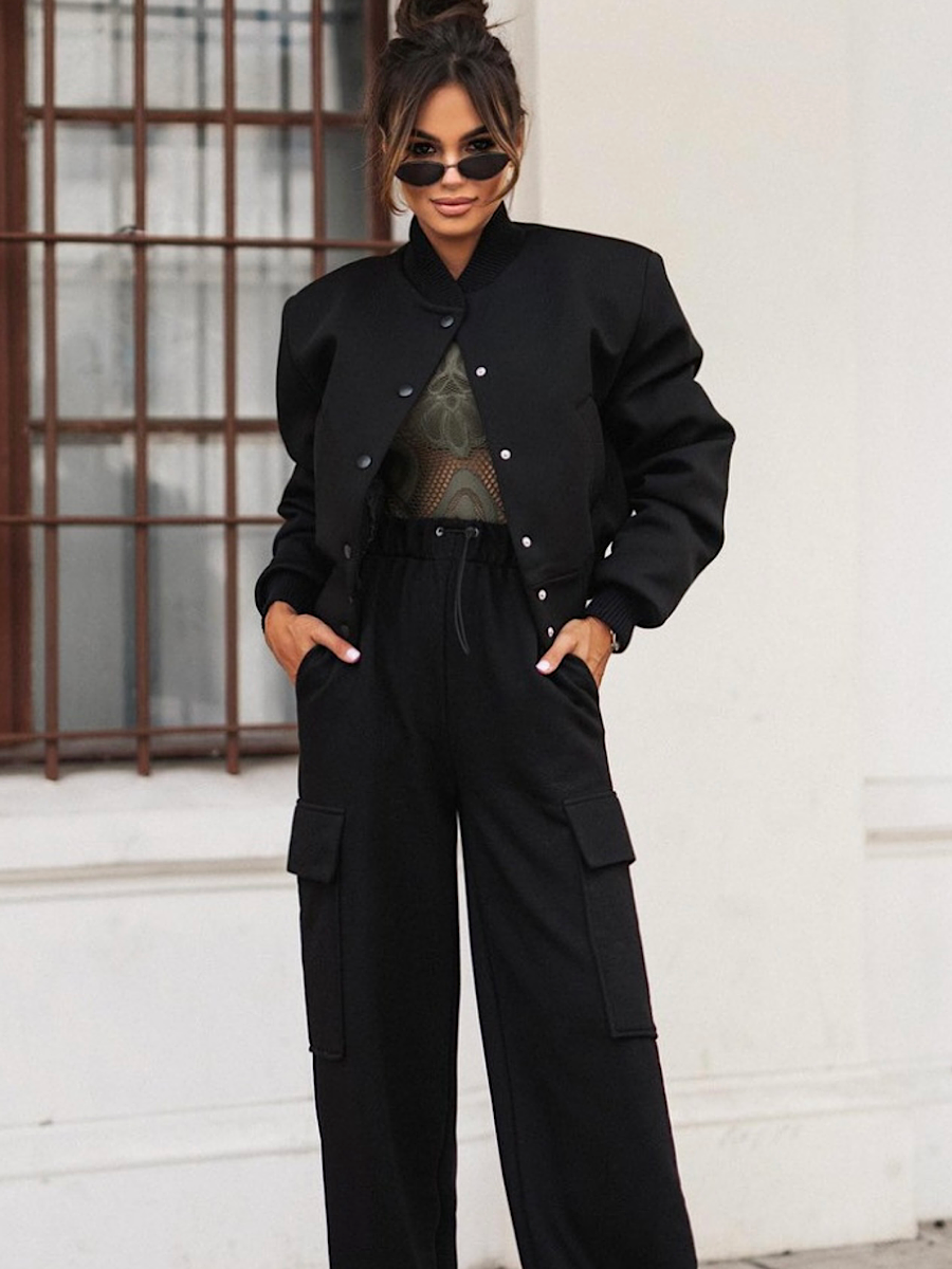 Czarne ściągacze przy rękawie, szyji, i na dole bomberki.