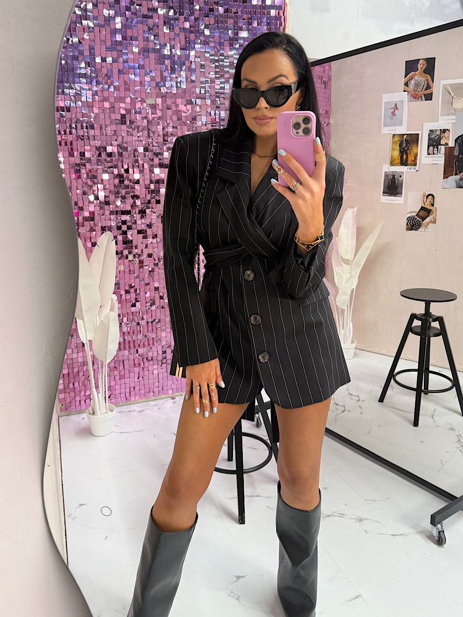 Tagi: elegancka kobieta, elegancka sukienka, marynarka, marynarko - sukienka, prążek, styl premium, sukienka, sukienka na imprezę, żakiet