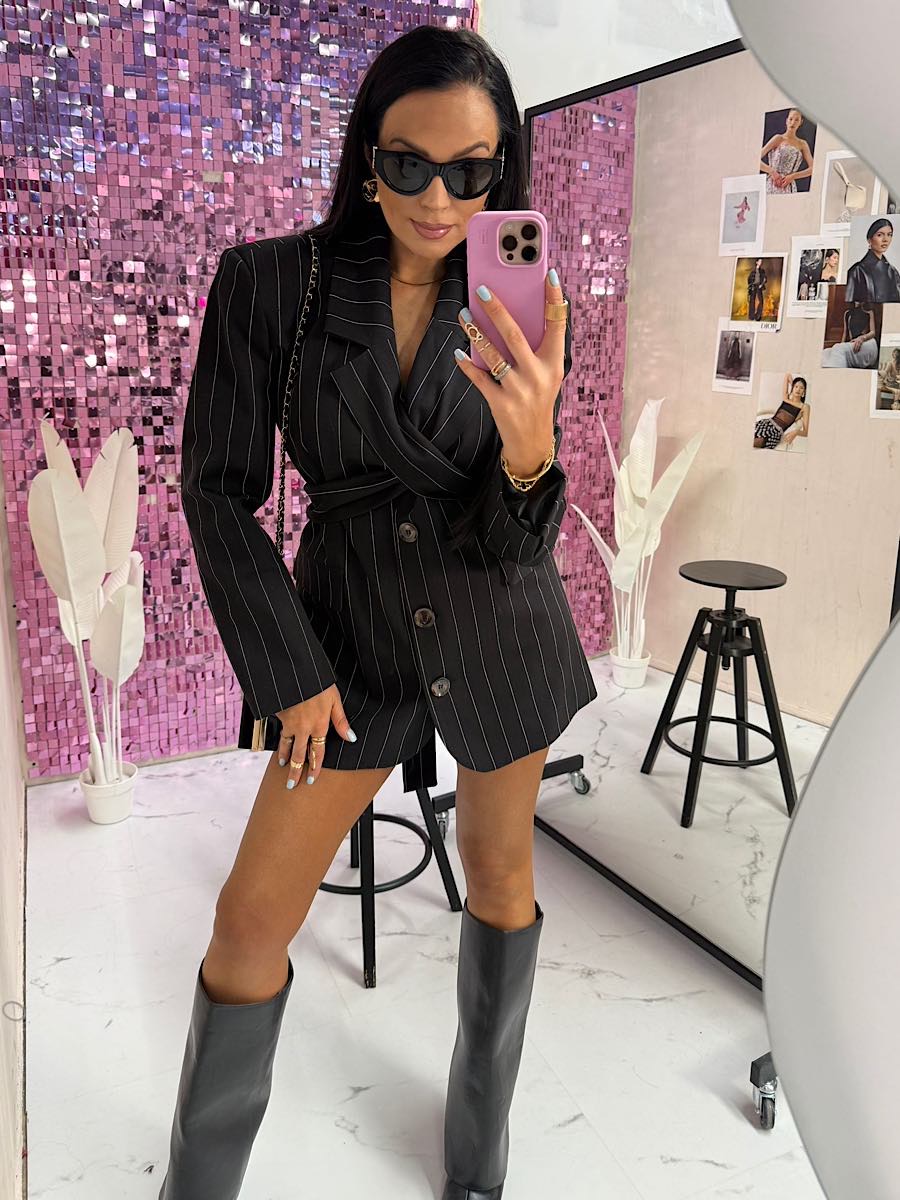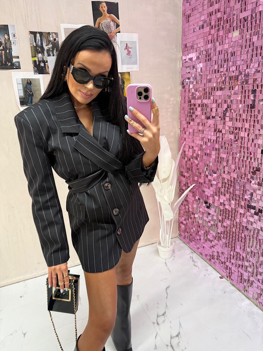 Czarna marynarko – sukienka w biały prążek od LaMilla.