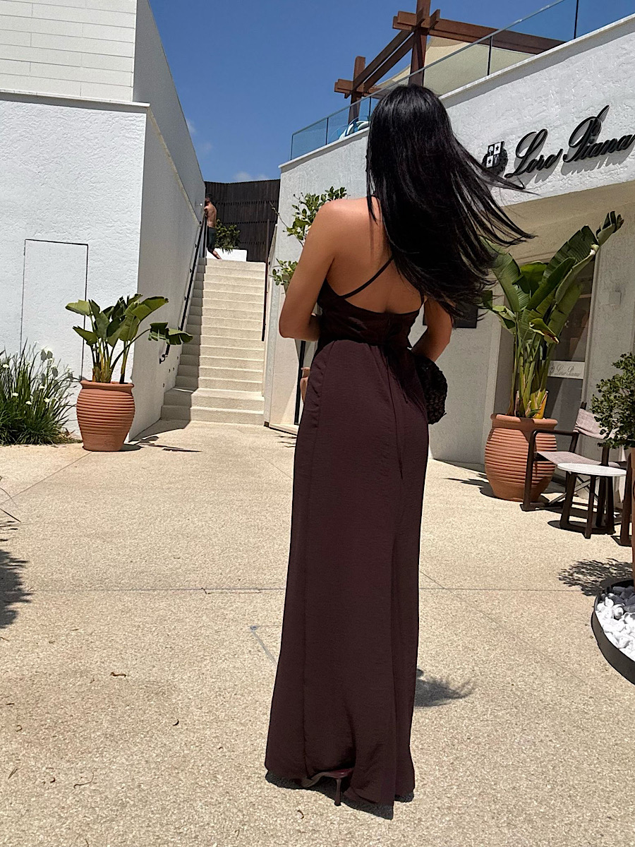 Długa, czekoladowa sukienka LaMilla z gorsetową górą.