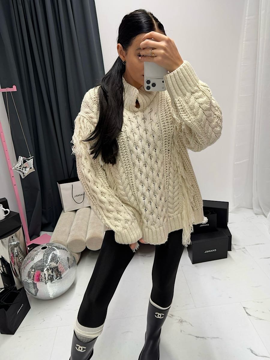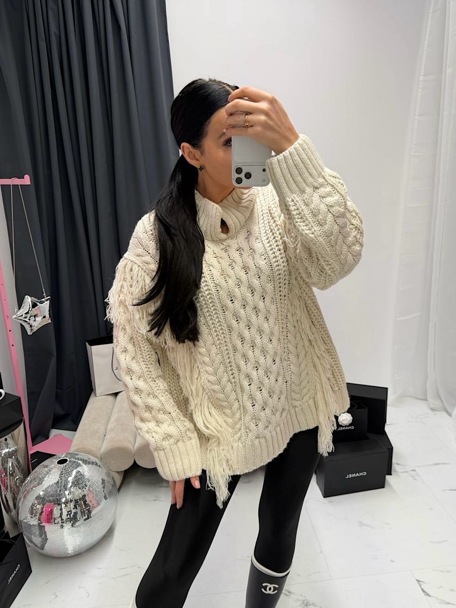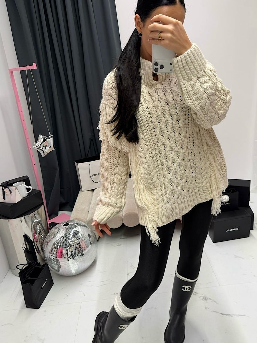 Ecru sweter z ozdobnymi frędzlami LaMilla.