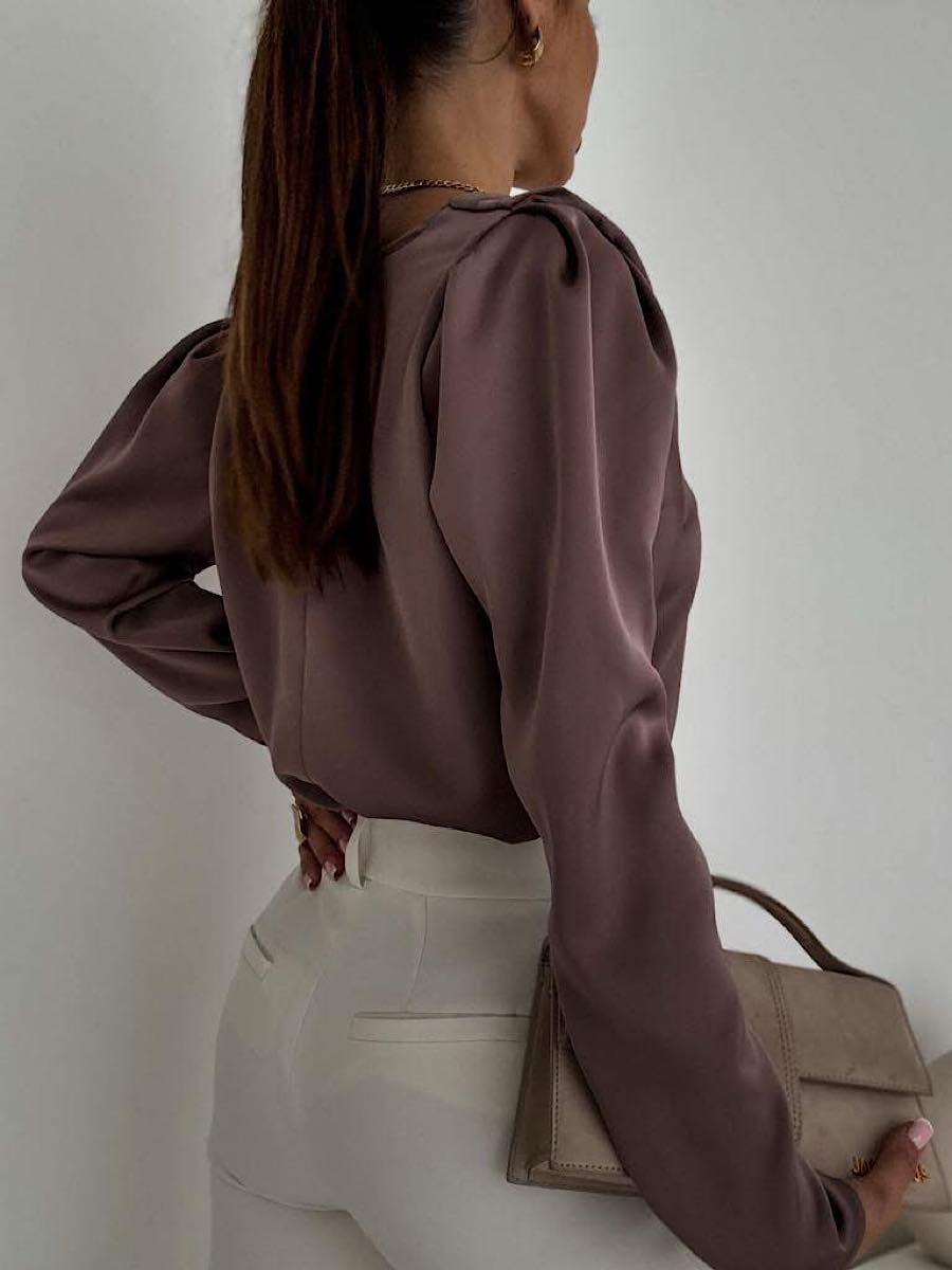Satynowa bluzka Megi B w kolorze czekoladowym.