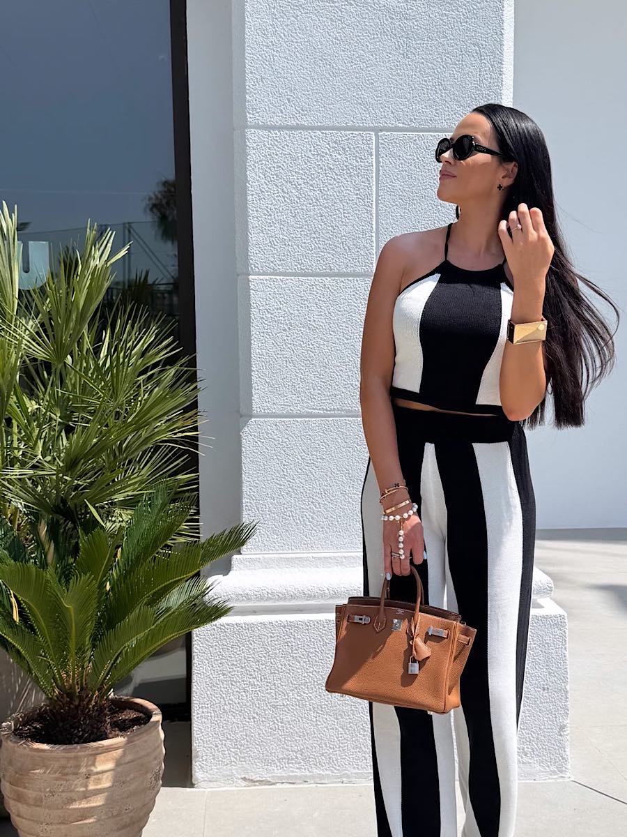Stylowy komplet od polskiej marki LaMilla to idealna propozycja dla kobiet, które cenią sobie modny wygląd, wygodę i elegancję w miejskim stylu. Składa się z krótkiego topu na ramiączkach typu halter oraz długich, szerokich spodni z wysokim stanem. Czarno – biała kolorystyka w kontrastowe pasy optycznie wydłuża sylwetkę i dodaj jej lekkości. Komplet został wykonany z wysokiej jakości, elastycznego materiału, który pięknie układa się na ciele i zapewnia komfort przez cały dzień. Pokochasz go za modny, przyciągający wzór w klasycznym połączeniu czerni i bieli i wygodę.