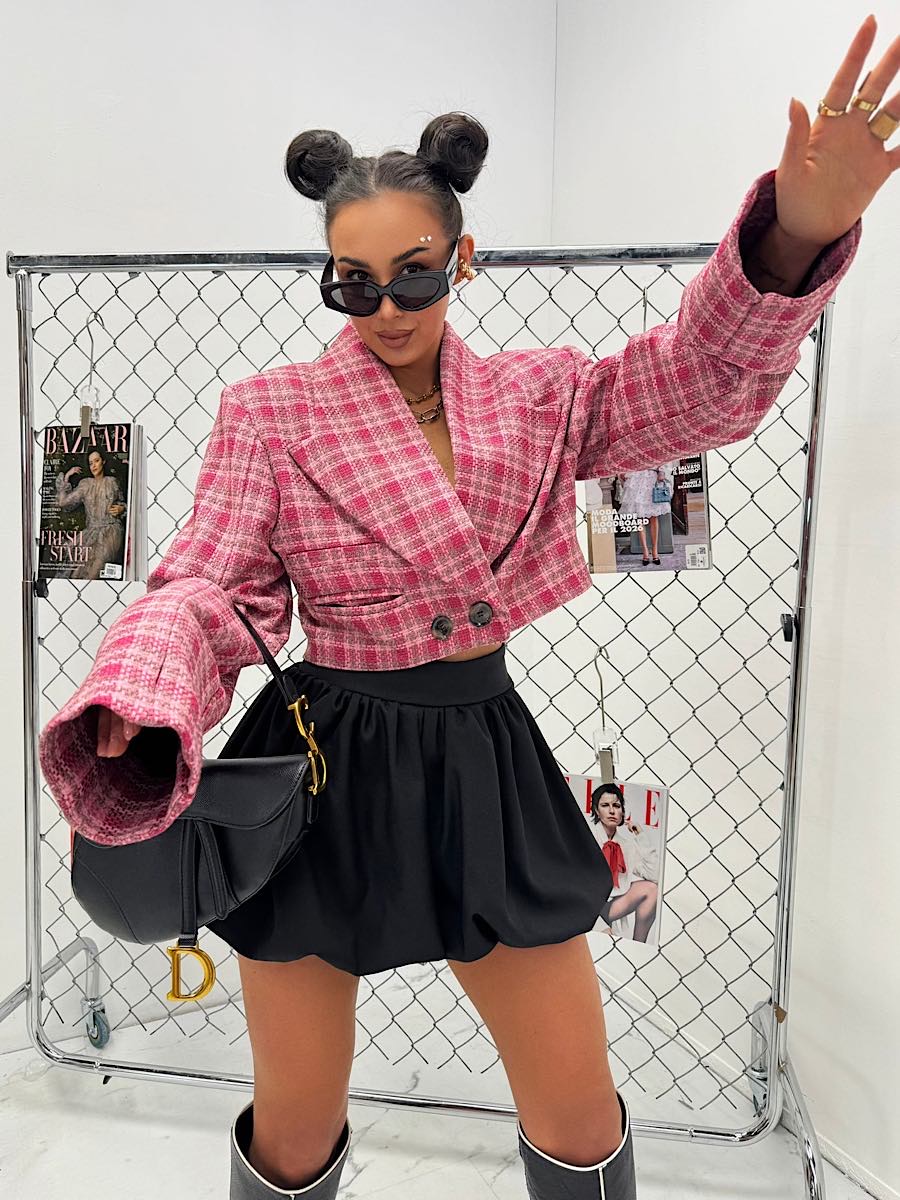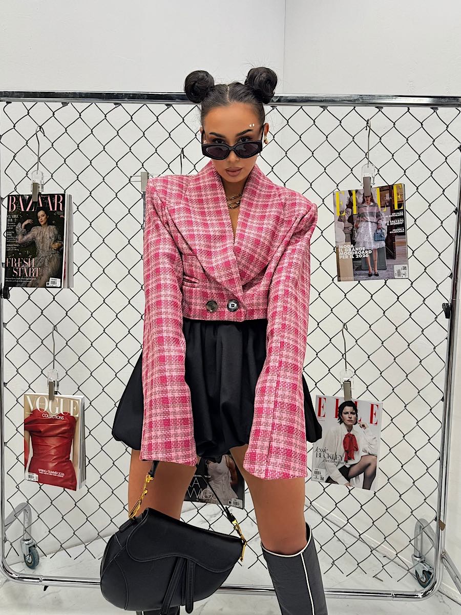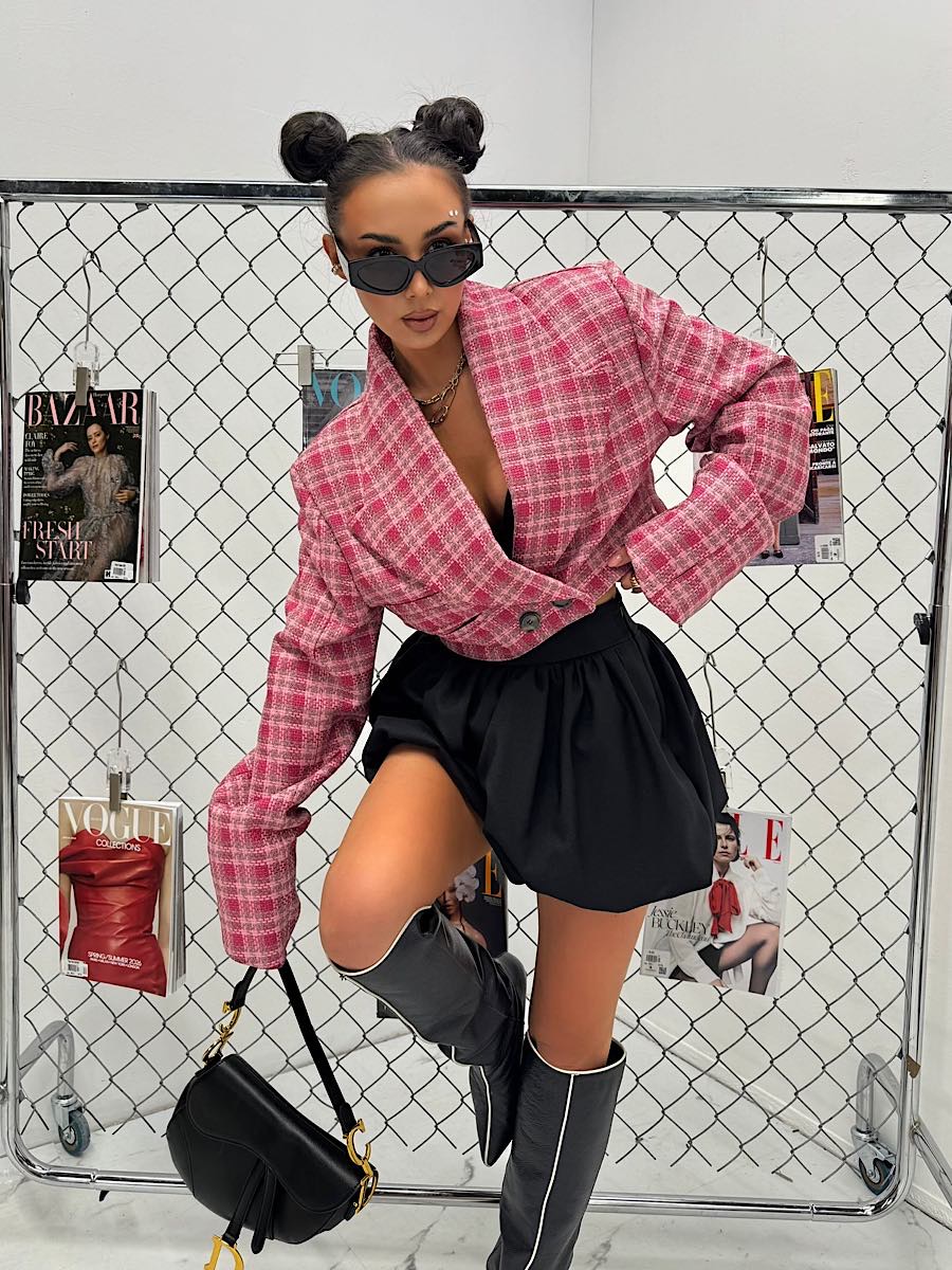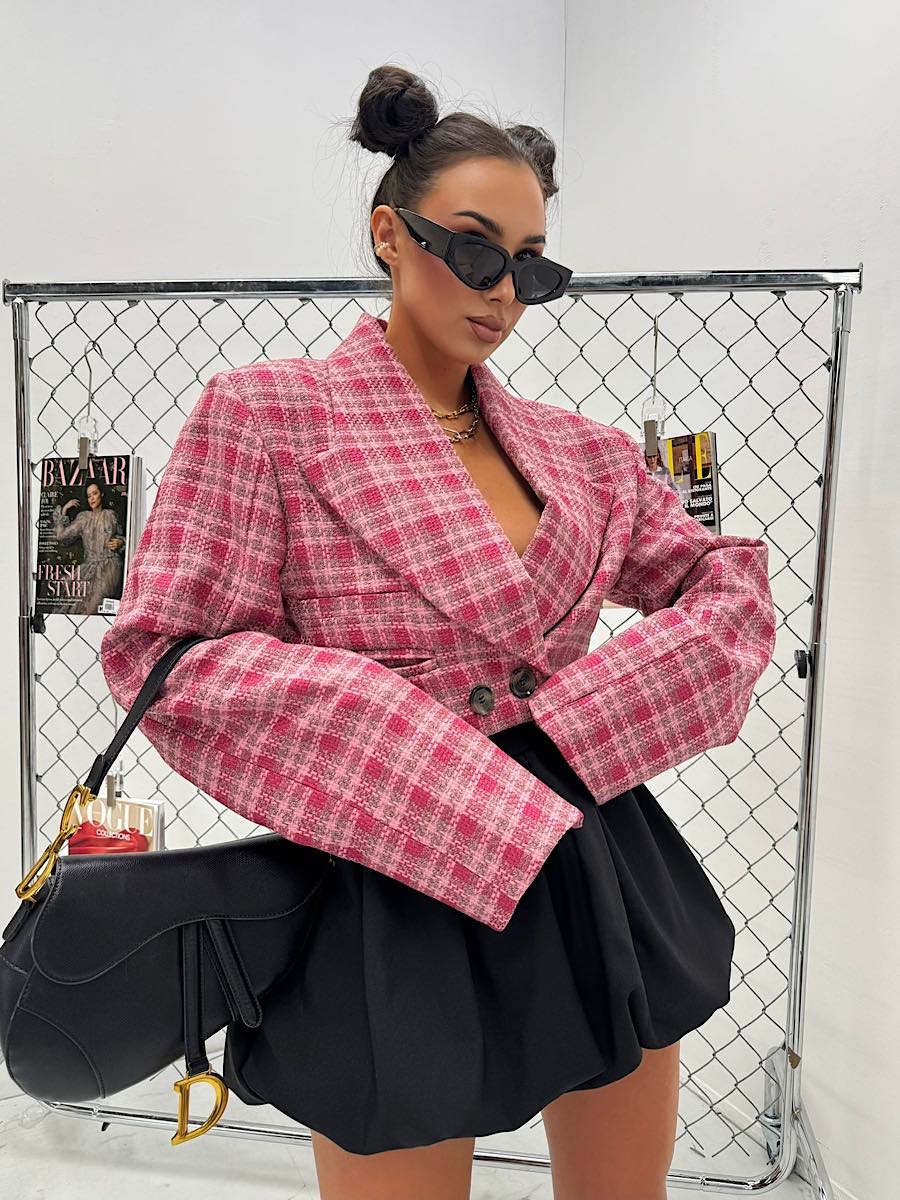 Tagi: krótki żakiet, marynarka w kratę, modna marynarka, różowa kratka, wiosenna kolekcja