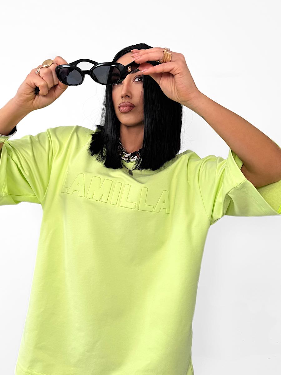 Limonkowy T-shirt LaMilla z wytłaczanym logo