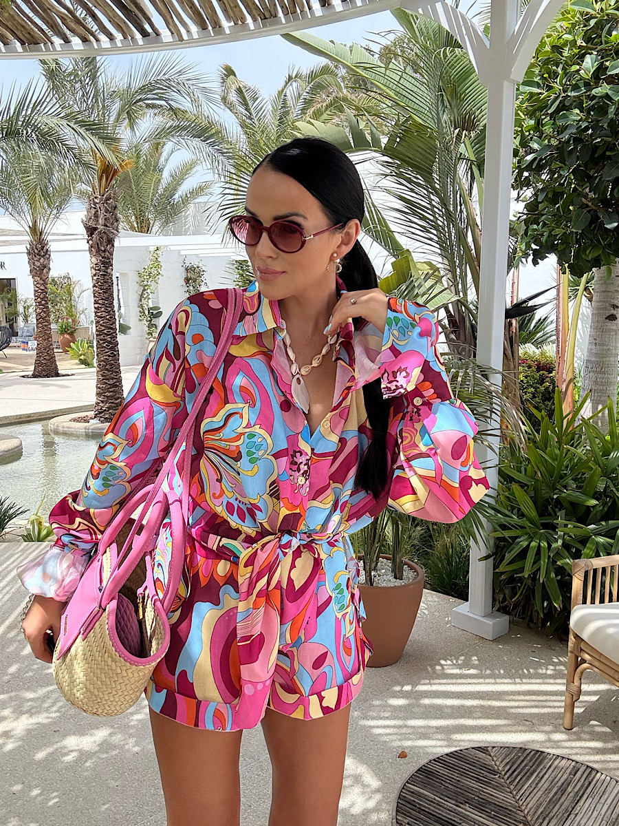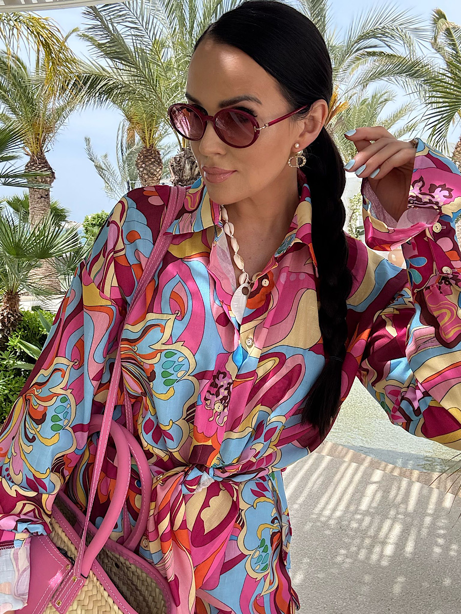 Tagi: komplet, komplet lamilla, komplet w kolorowy wzór lamilla, koszula, letni komplet, lniany komplet lamilla, spodenki