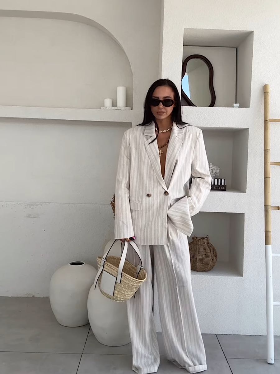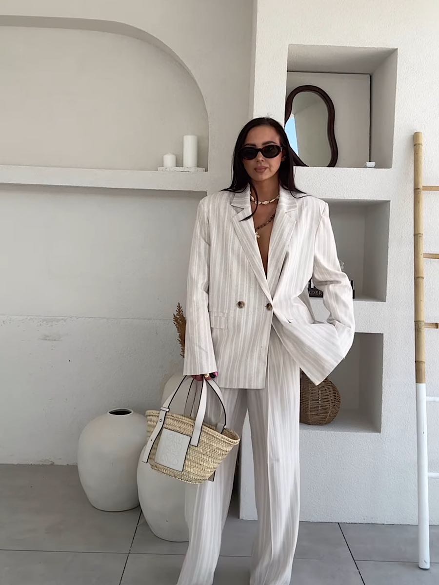 Beżowa marynarka LaMilla ze wzorem w prążki. Stylowa, elegancka i ponadczasowa – beżowa marynarka LaMilla w subtelny prążek to idealna propozycja dla kobiet ceniących modę i klasę. Świetnie sprawdzi się zarówno do jeansów, jak i eleganckich stylizacji.