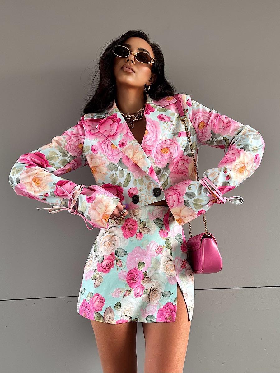 Tagi: kobieca moda, kwiatowa marynarka, kwiaty, marynarka damska, modna kobieta, polska marka, sezon 2025, styl premium, wiosna