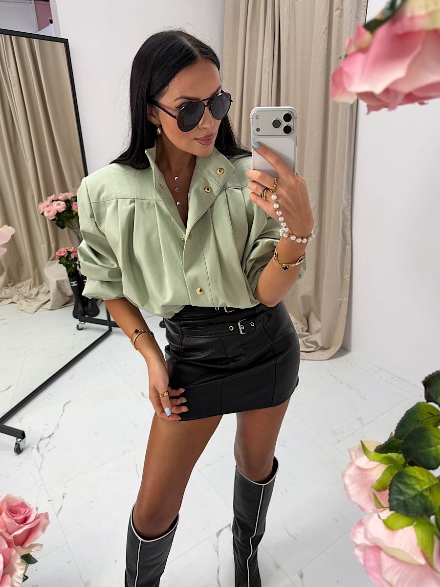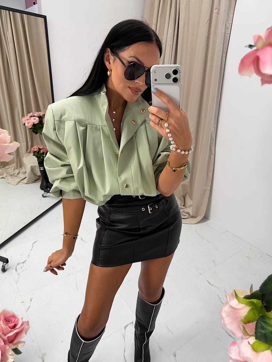Pistacjowa kurtka bomberka damska od LaMilla to połączenie modnego fasonu z eleganją i komfortem noszenia. Model stworzony z myślą o kobietach, które cenią sobie styl premium, dopracowane detale oraz wysoką jakość wykonania. Kurtka została uszyta z wysokogatunkowej wiskozy, dzięki czemu materiał jest miękki, przewiewny i doskonale układa się na sylwetce. Krótki fason typu bomber pięknie podkreśla talię i świetnie komponuje się zarówno z jeansami, jak i eleganckimi spodniami czy spódnicą. Z przodu znajdują się efektywne namarszczenia, które nadają całości szyku i subtelnej elegancji. Model zapinany jest na złote napy, które stanowią biżuteryjny akcent i podkreślają ekskluzywny charakter kurtki. Delikatna stójka przy szyi dodaje nowoczesności, a długie bufiaste rękawy wprowadzają modowy, designerski akcent inspirowany najnowszymi trendami.