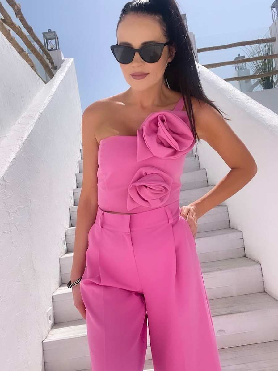 Krótki, różowy top, który pięknie podkreśli Twoją sylwetkę.