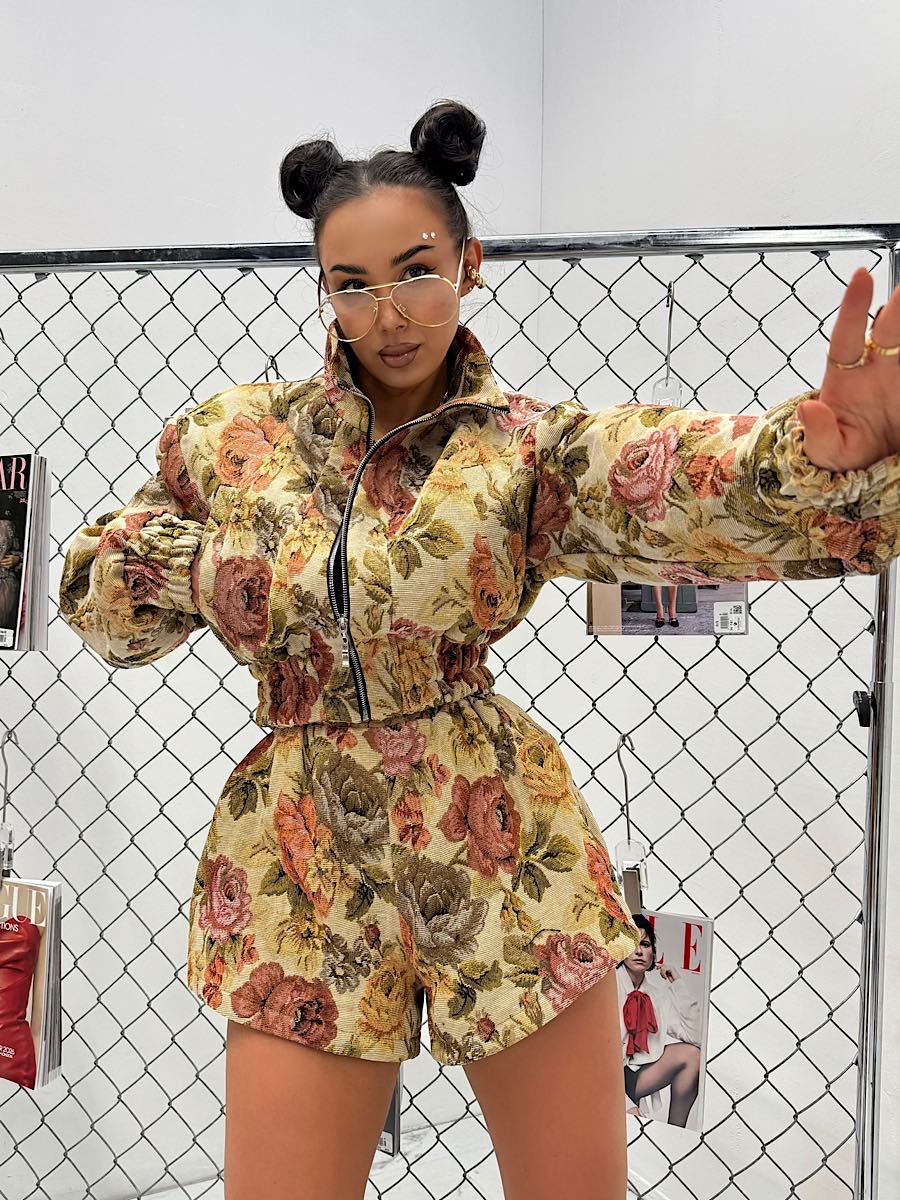 Stylowe i eleganckie kwieciste szorty o fasonie bombki to propozycja dla kobiet kochających nowoczesną klasykę i wygodę. Wykonane z wysokiej jakości bawełny, gwarantują doskonałe dopasowanie do sylwetki oraz przyjemność noszenia przez cały dzień. Model LaMilla zachwyca idealnym krojem, który optycznie wydłuża nogi i podkreśla talię. Gumka w talii sprawia, że szorty świetnie leżą i prezentują się wyjątkowo kobieco. Koniecznie połącz je w zestawie z marynarką lub bomberką Rosalia. Stworzysz z nimi wiele pięknych stylizacji zarówno tych eleganckich, jak i codziennych outfitów.