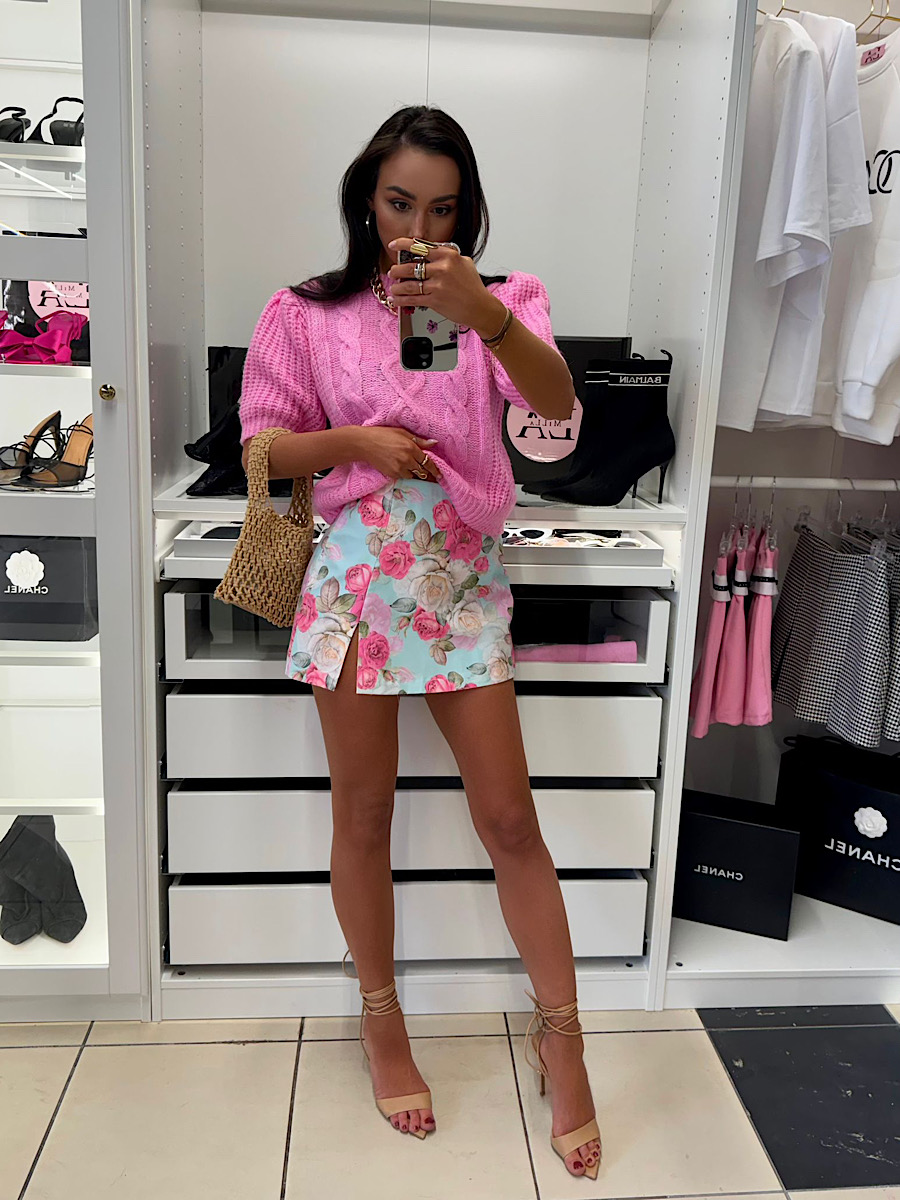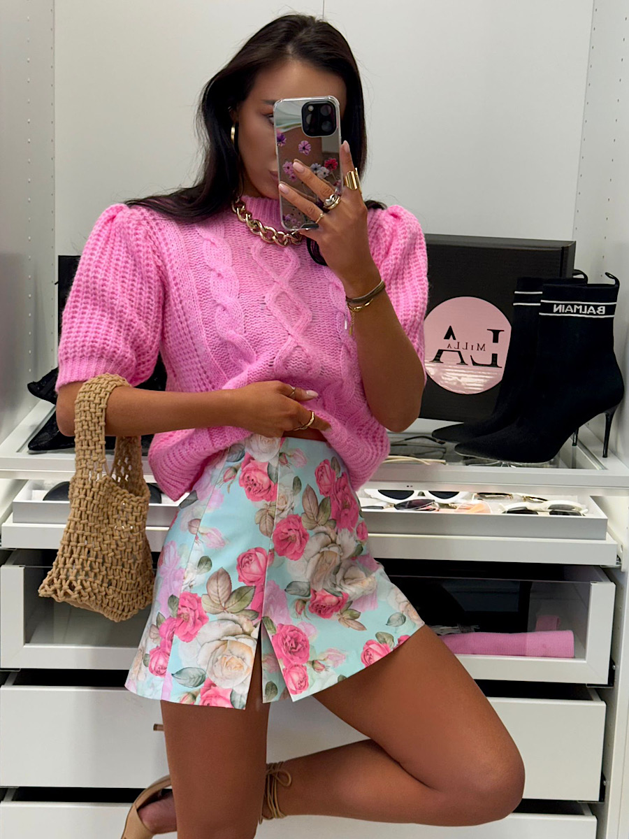Spódnico – spodenki LaMilla we wzorze różowych kwiatów.