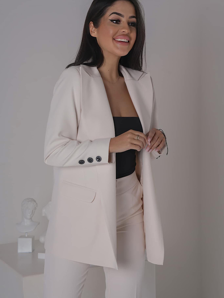 Klasyczny, lekko zwężany krój pięknie podkreśla sylwetkę – dodając jej lekkości i szyku.