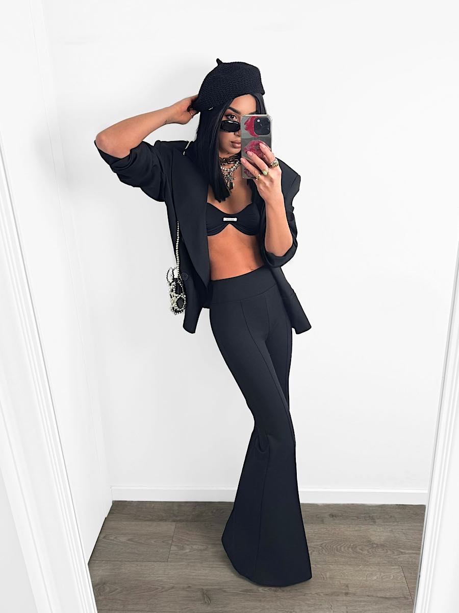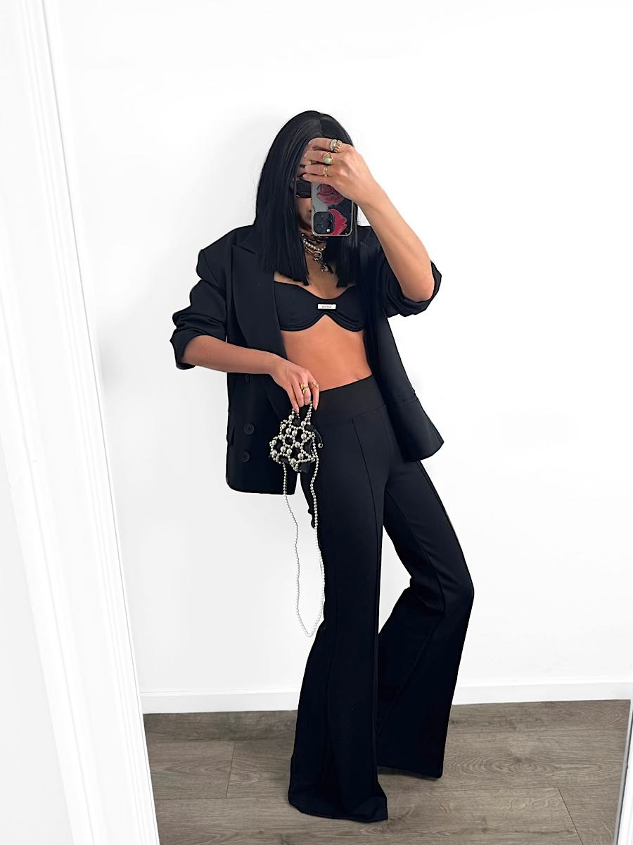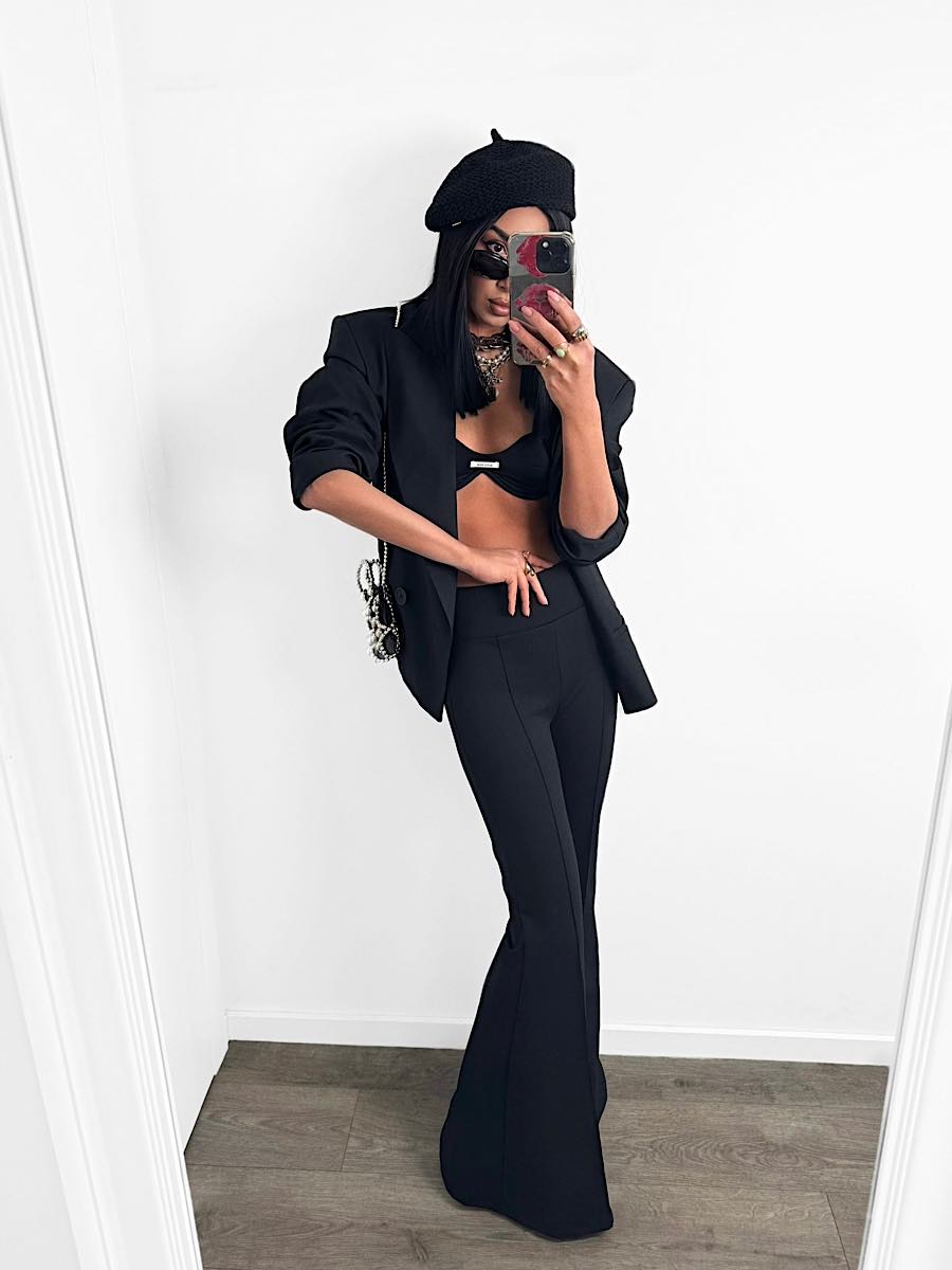 Czarne spodnie dzwony LaMilla z wysokim stanem.