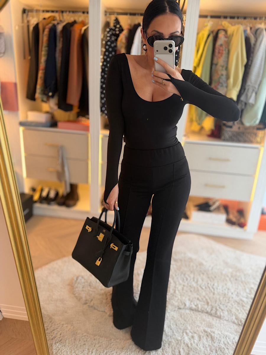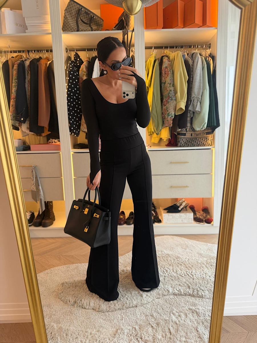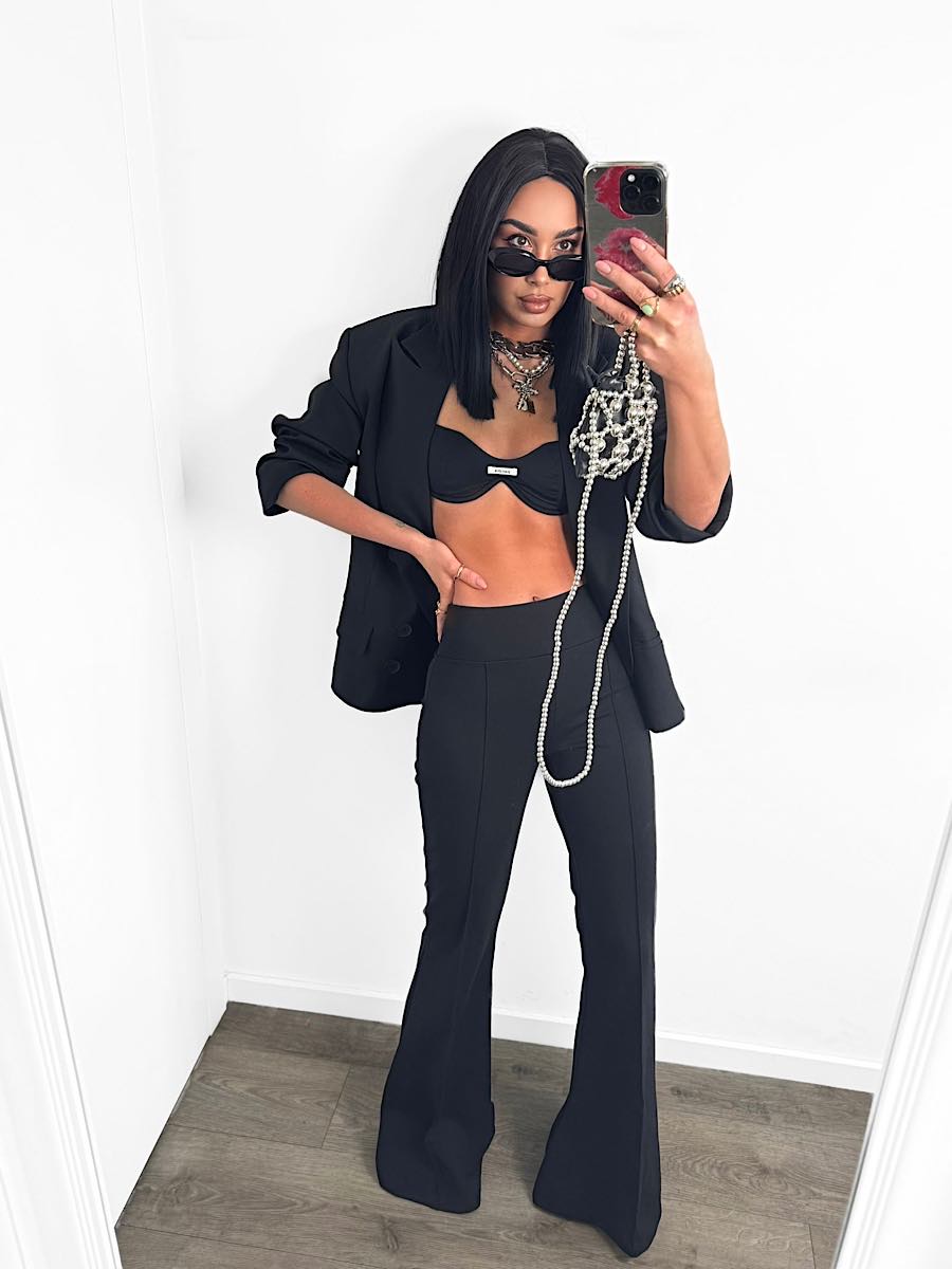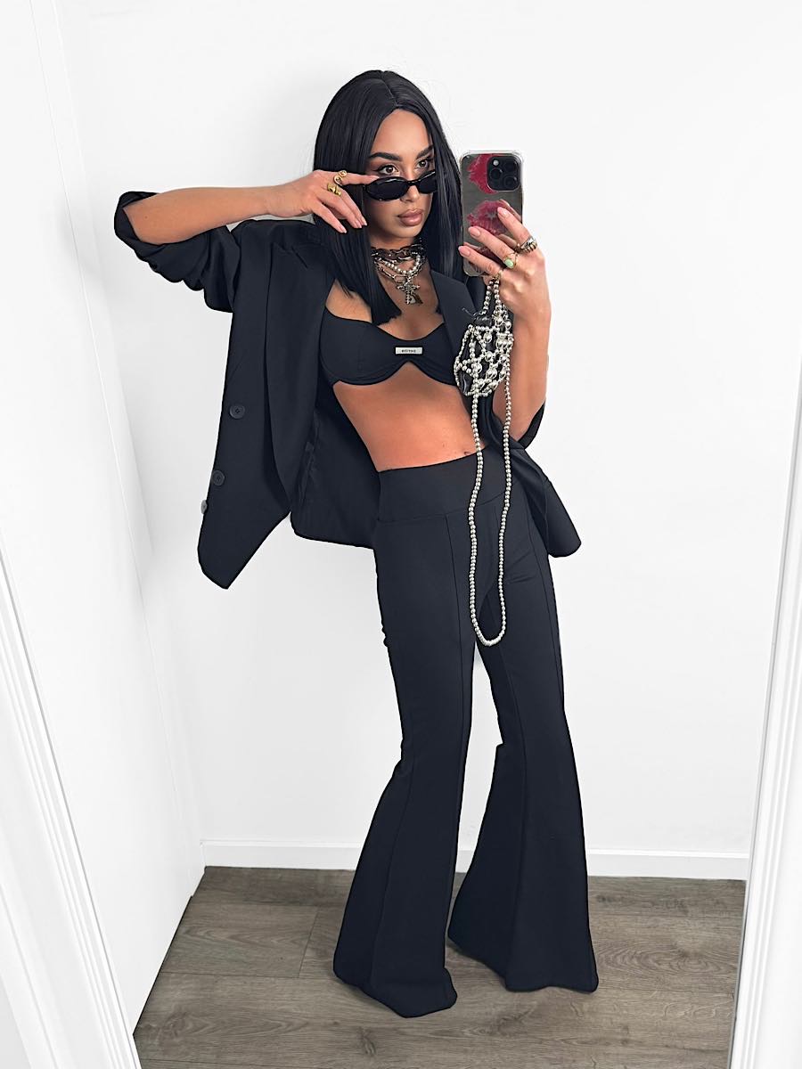 Czarne spodnie dzwony LaMilla z wysokim stanem.