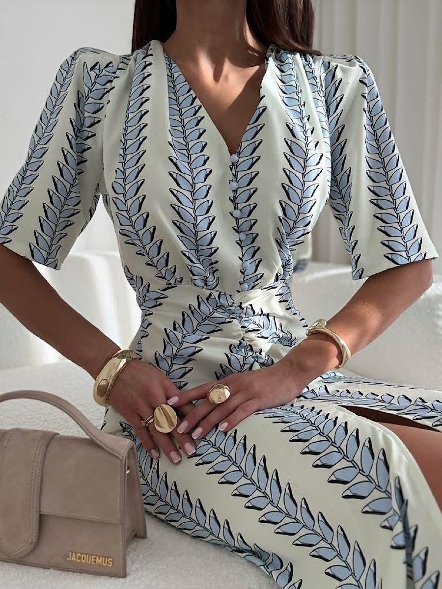 Midi sukienka Megi B o dopasowanym fasonie, podkreślająca sylwetkę.