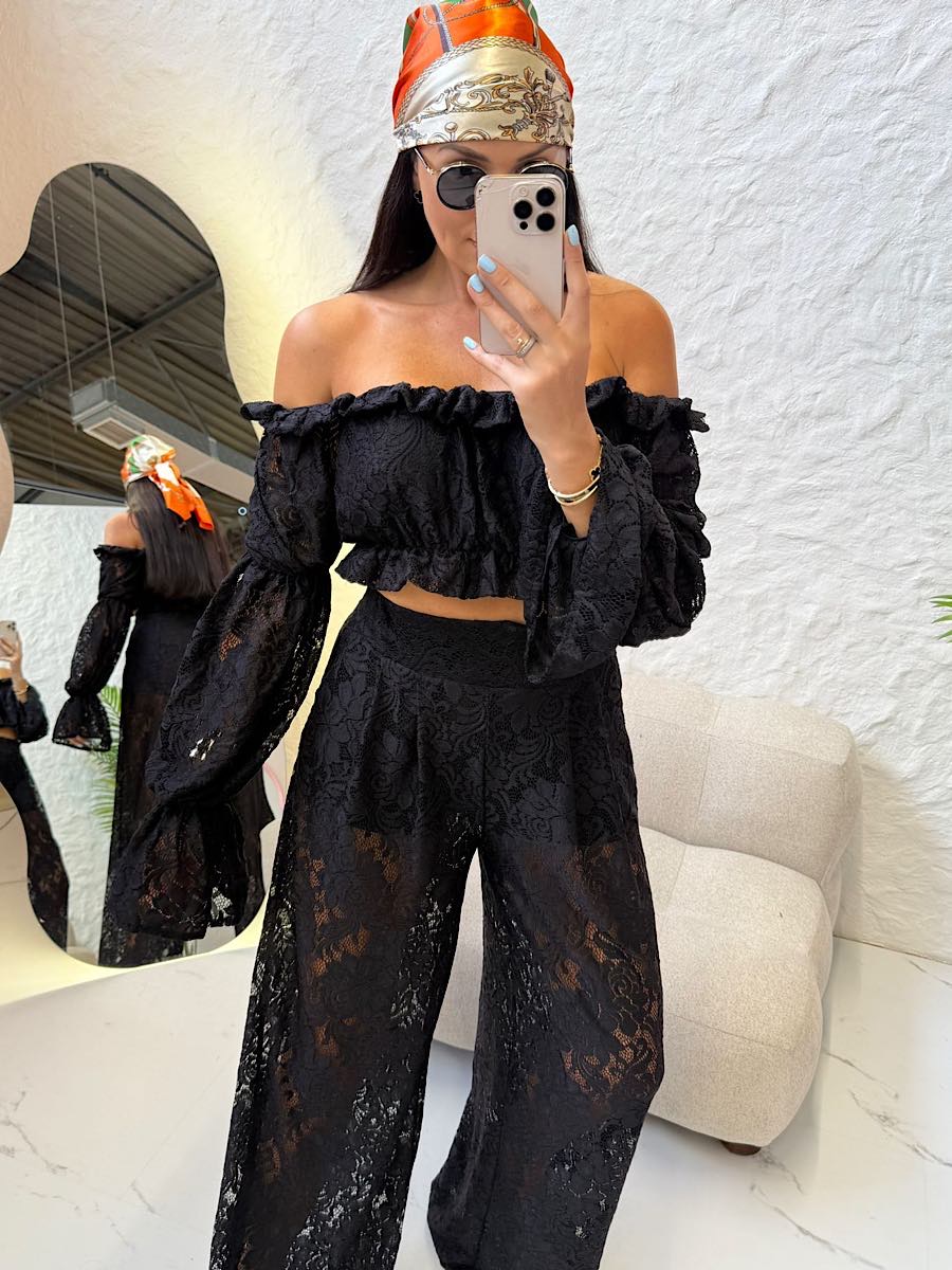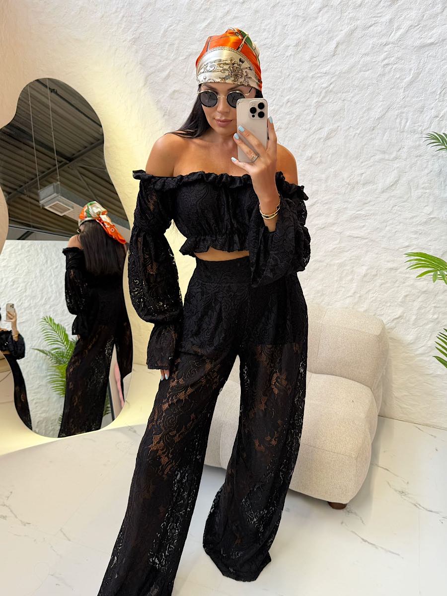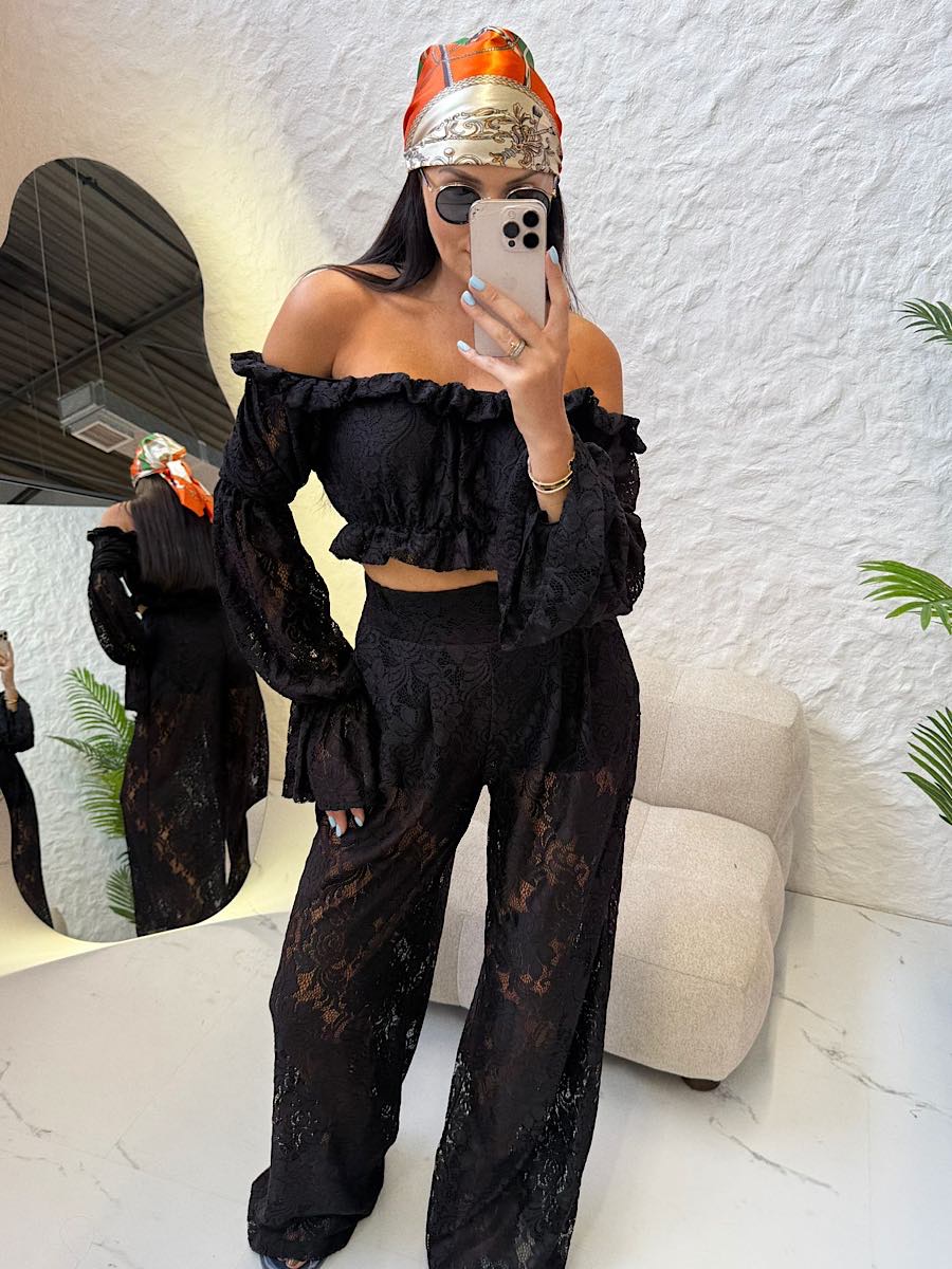 Zmysłowe, a przy tym niezwykle wygodne – te koronkowe spodnie szwedy to idealna propozycja na wieczorne wyjścia, specjalne okazje jak i codzienne stylizacje. Wykonane z efektownej czarnej koronki w wzór kwiatowy. Długie, szerokie nogawki pięknie wydłużają nogi. W pasie wygodna gumka, która dopasowuje się do sylwetki i podkreśla kobiecą talię. Wewnętrzne szorty wszyte pod spodem – dla komfortu i dyskrecji. To spodnie, które robią wrażenie – połącz je z dopasowanym topem lub elegancką bluzką i stwórz look, który przyciąga spojrzenia.