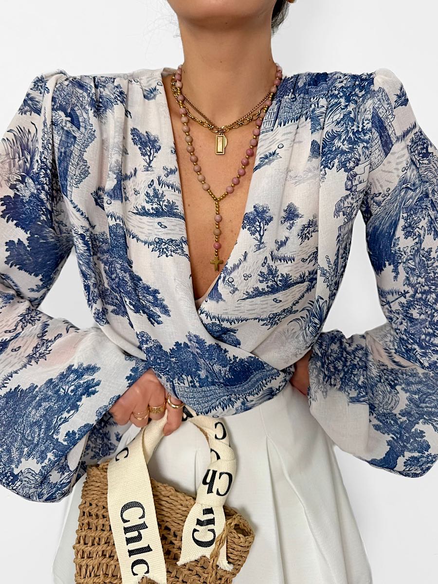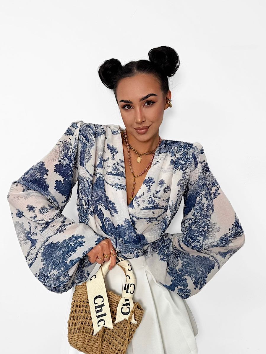 Wiązana bluzka LaMilla w granatowym wzorze Dior