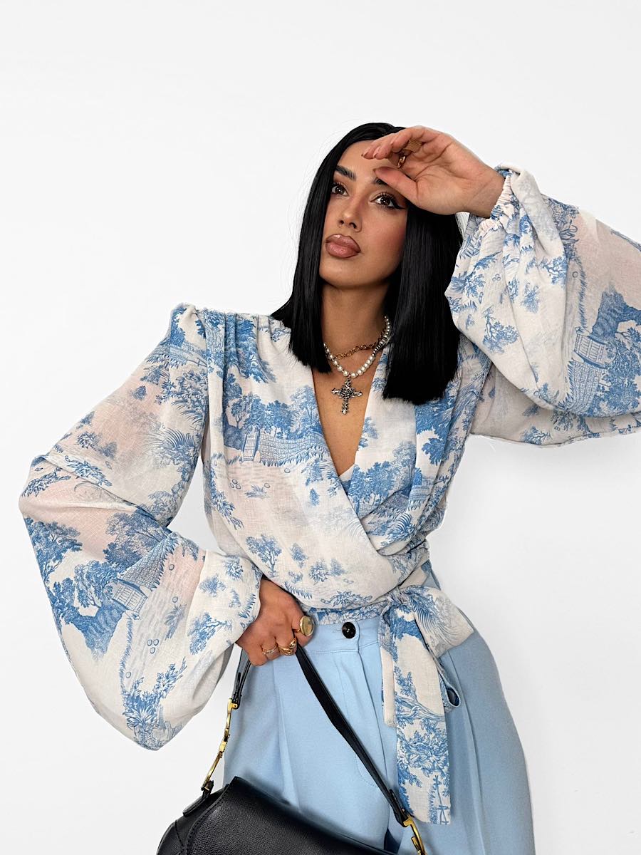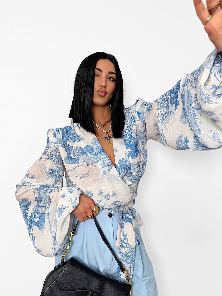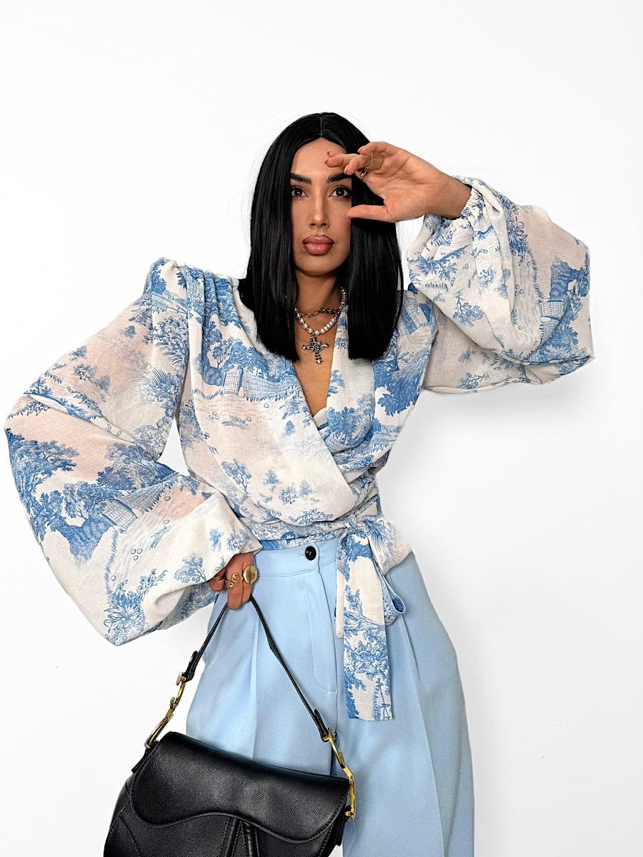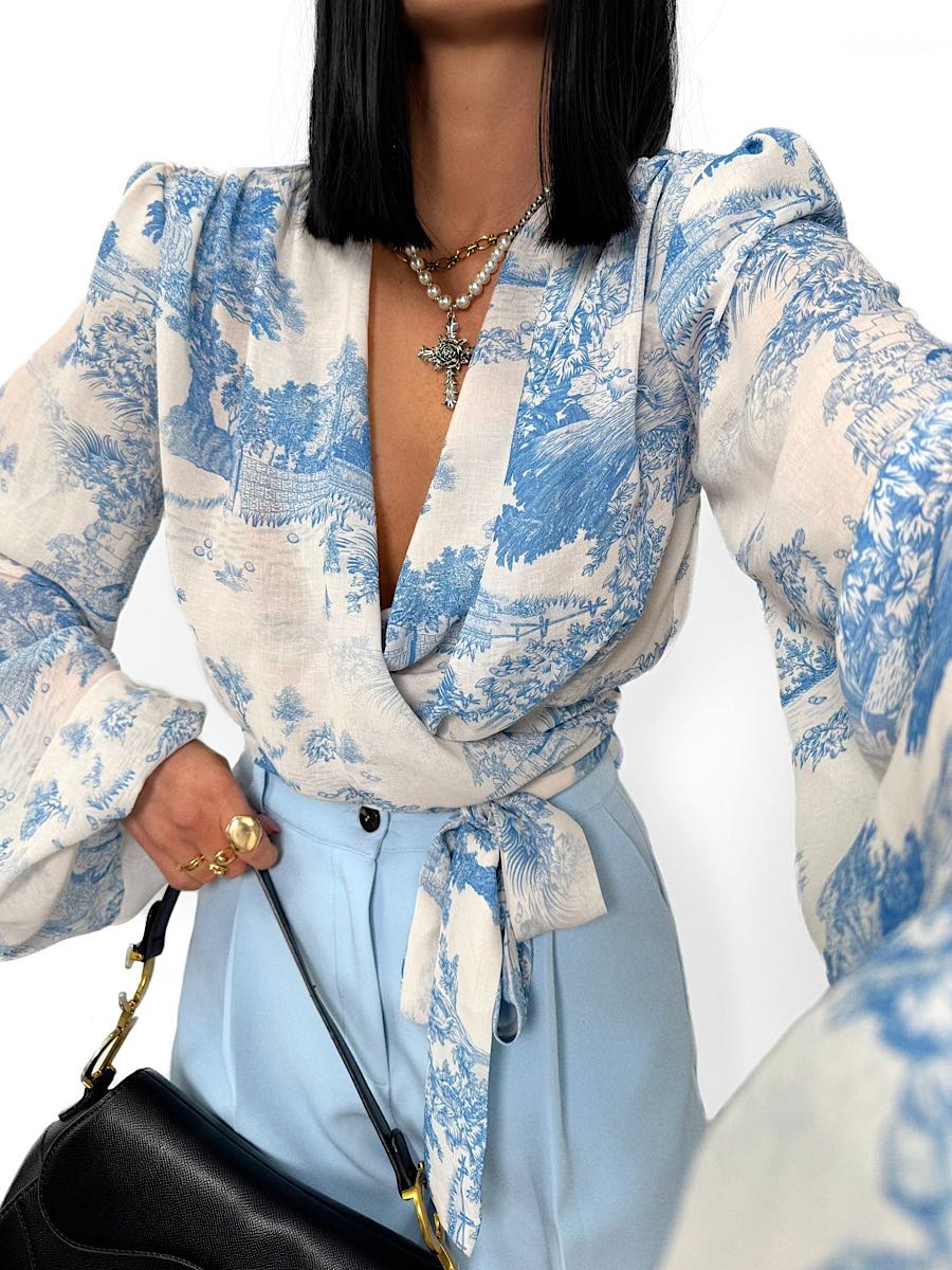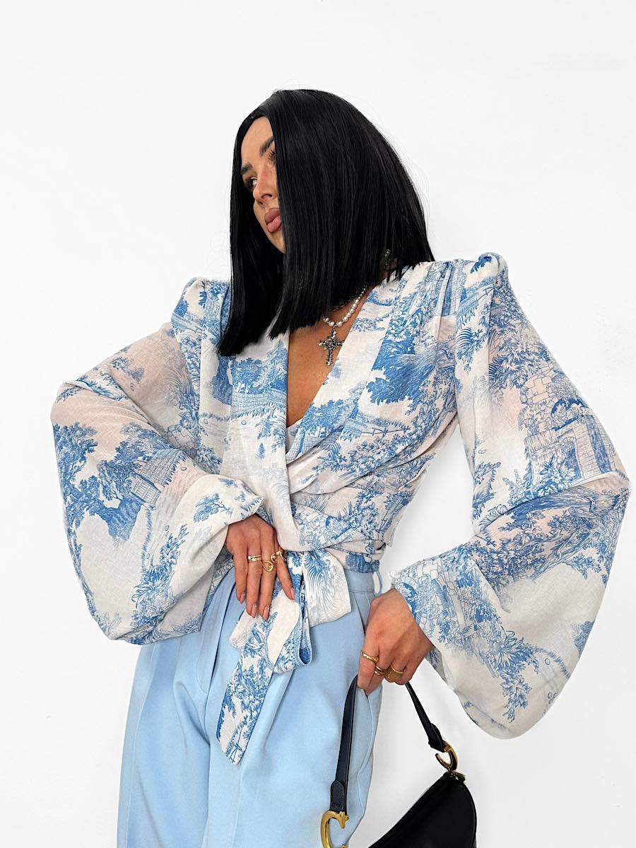 Wiązana bluzka LaMilla w niebieskim wzorze Dior