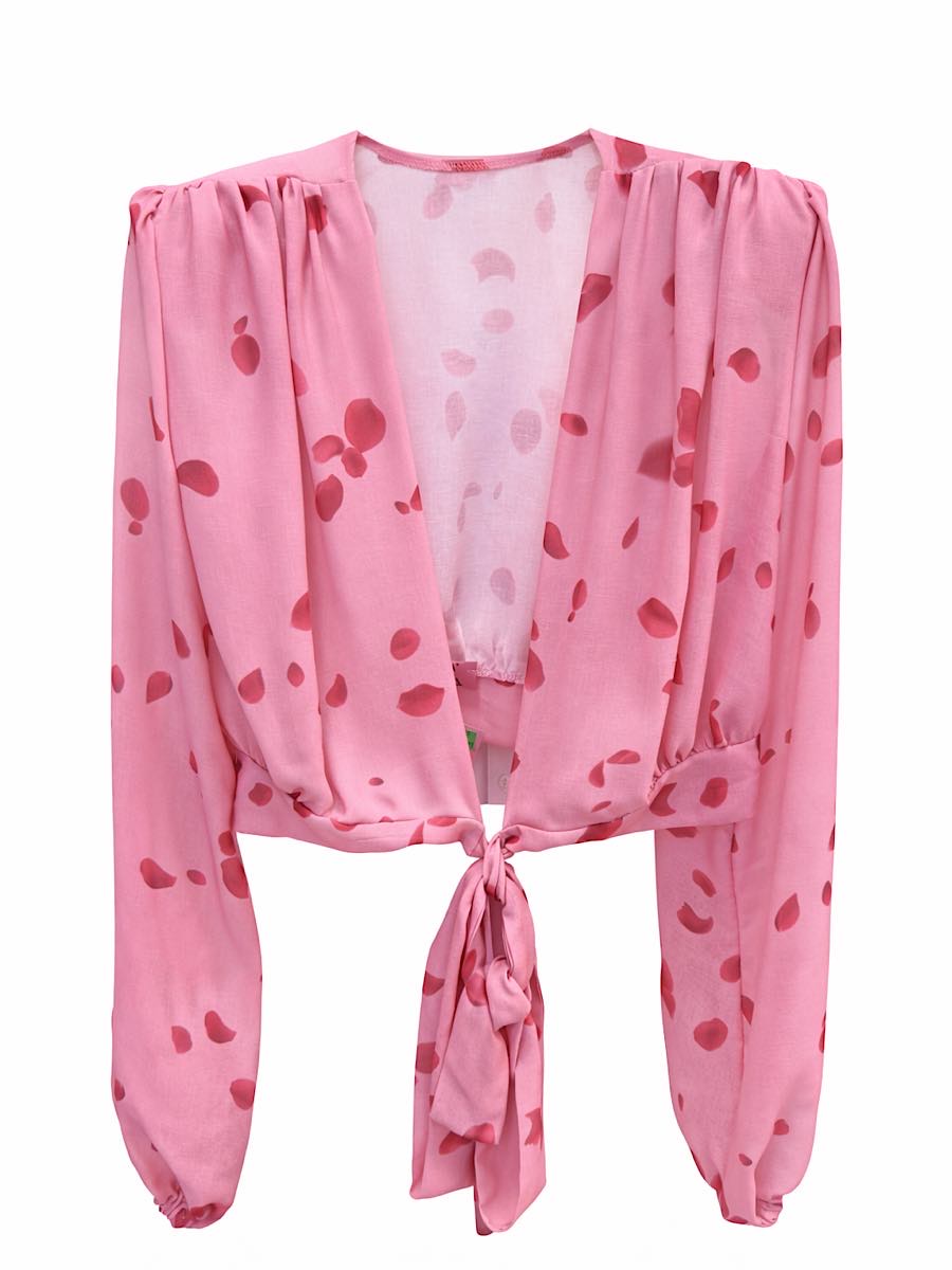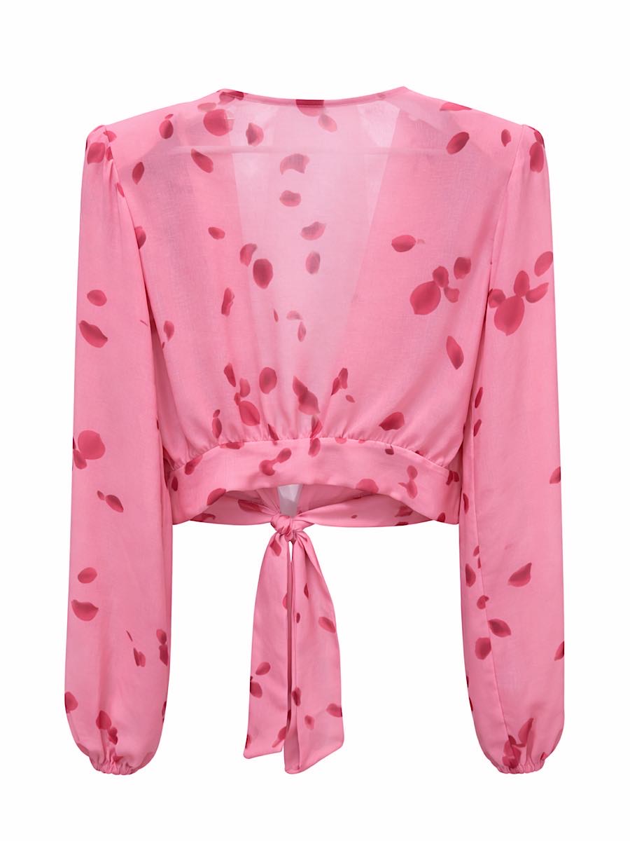 Wiązana bluzka LaMilla w różowym kolorze z płatkami róż