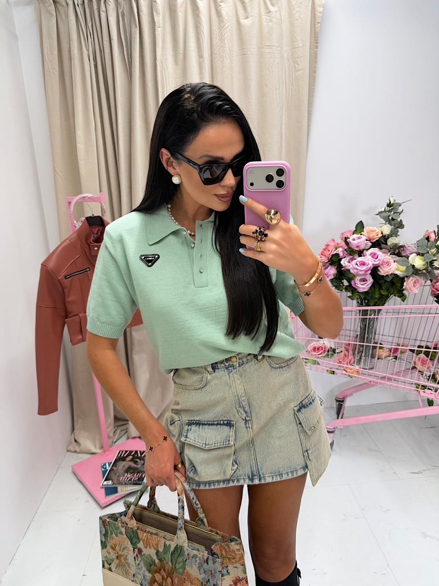 Tagi: bluzka z kołnierzykiem, bluzka z krótkim rękawem, polo, polówka, sweterek, zielony sweterek