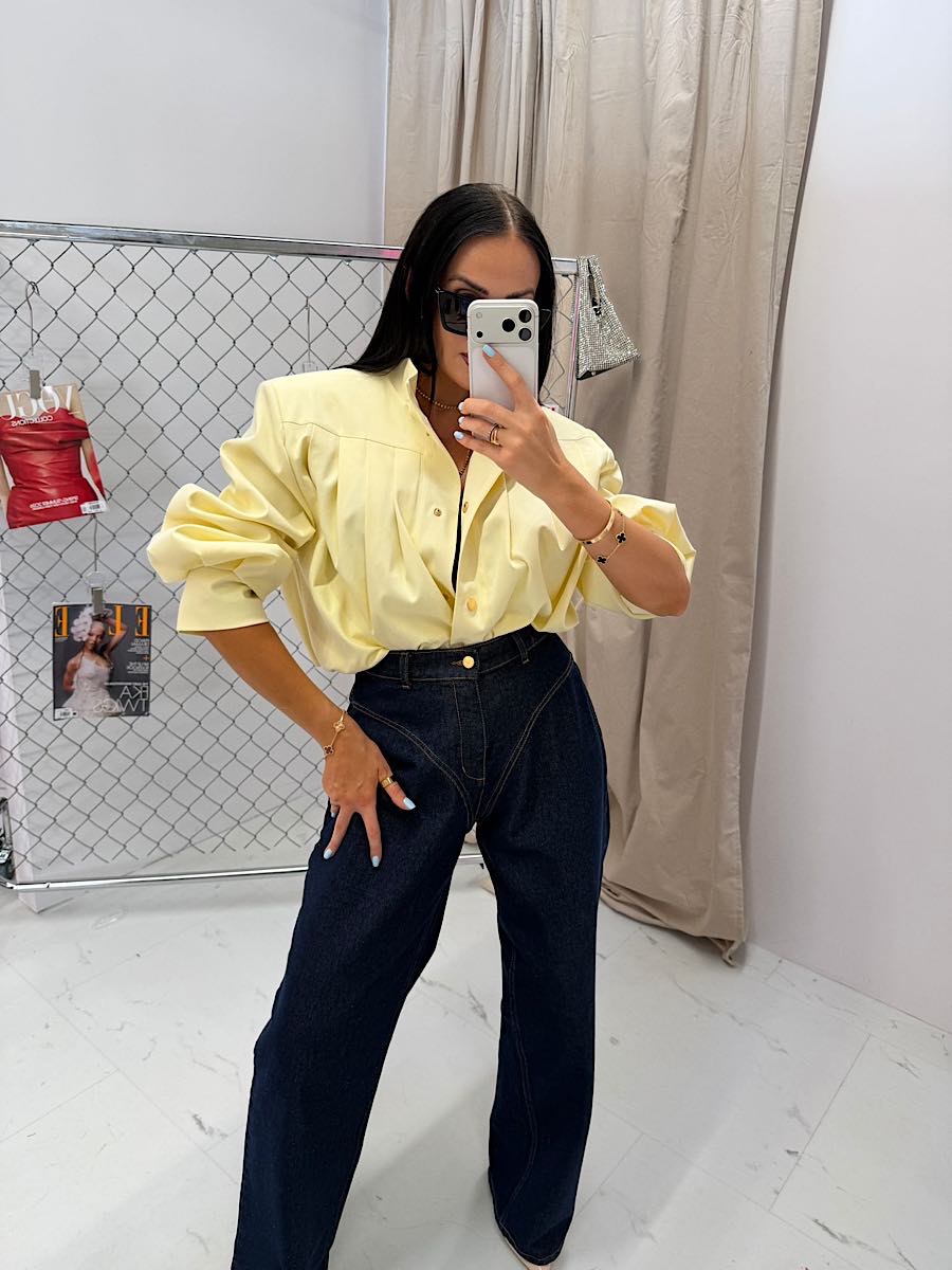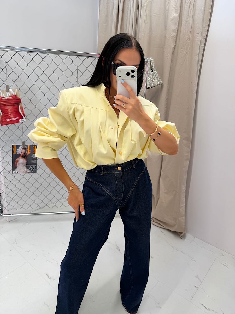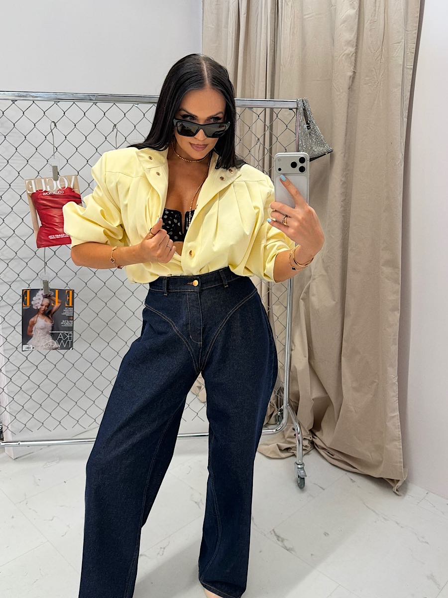 Żółta kurtka bomberka damska od LaMilla to połączenie modnego fasonu z eleganją i komfortem noszenia. Model stworzony z myślą o kobietach, które cenią sobie styl premium, dopracowane detale oraz wysoką jakość wykonania. Kurtka została uszyta z wysokogatunkowej wiskozy, dzięki czemu materiał jest miękki, przewiewny i doskonale układa się na sylwetce. Krótki fason typu bomber pięknie podkreśla talię i świetnie komponuje się zarówno z jeansami, jak i eleganckimi spodniami czy spódnicą. Z przodu znjadują się efektywne namarszczenia, które nadają całości szyku i subtelnej elegancji. Model zapinany jest na złote napy, które stanowią biżuteryjny akcent i podkreślają ekskluzywny charakter kurtki. Delikatna stójka przy szyi dodaje nowoczesności, a długie bufiaste rękawy wprowadzają modowy, designerski akcent inspirowany najnowszymi trendami.